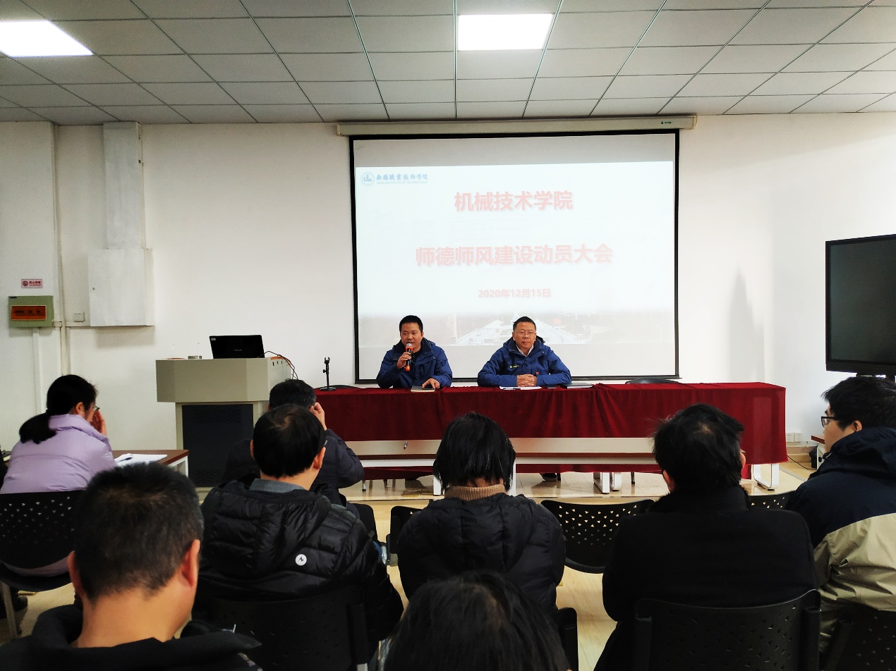 为深入贯彻落实全国教育大会精神,扎实推进《中共中央国务院关于全面深化新时代教师队伍建设改革的意见》实施,引导广大教师自觉提高师德师风修养和教育教学能力,打造一支“有理想信念、有道德情操、有扎实学识、有仁爱之心”的教师队伍,机械技术学院按照学校统一部署,于12月15日下午召开全院教职工师德师风自查自纠工作动员大会。