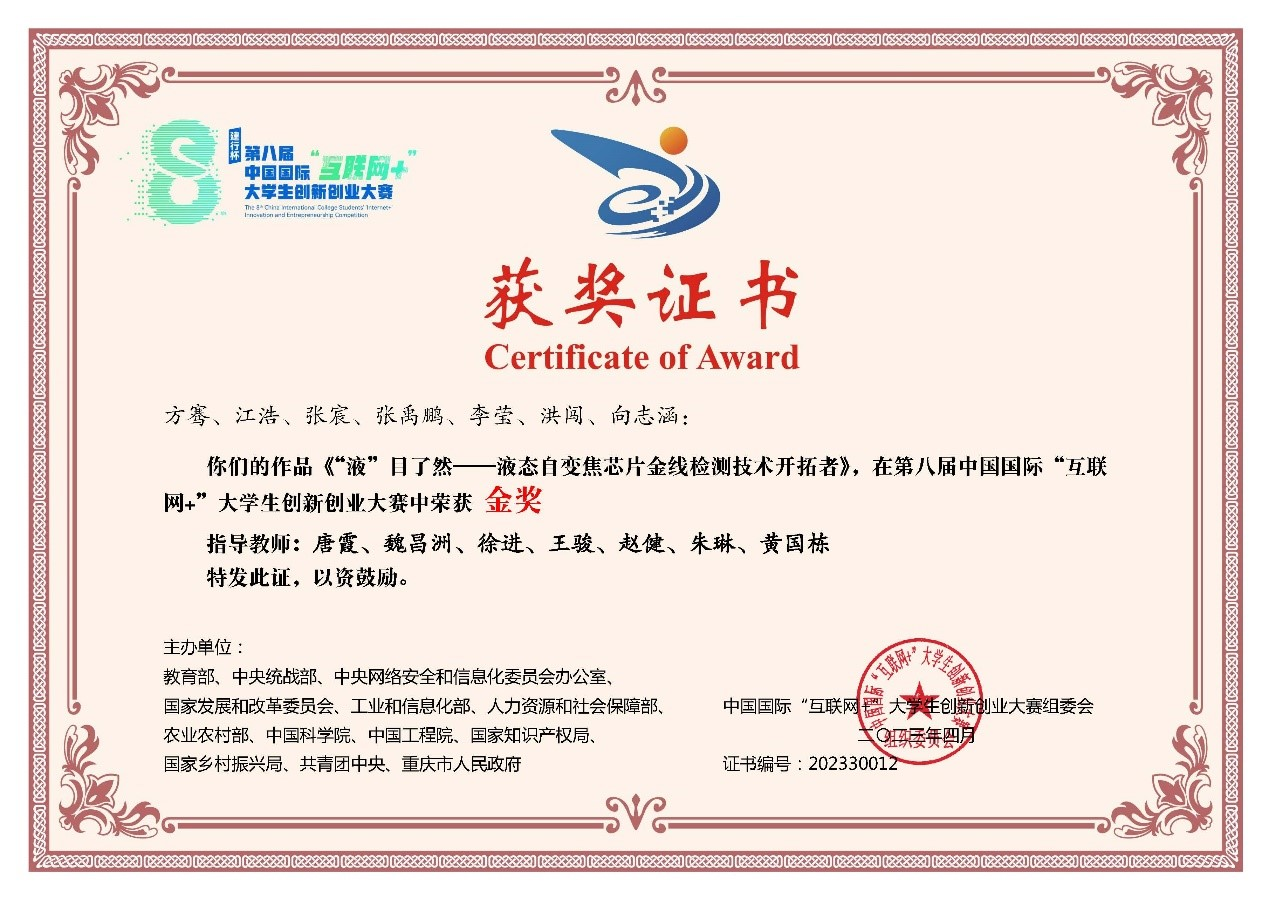 指导学生获第八届中国国际“互联网+”大学生创新创业大赛金奖