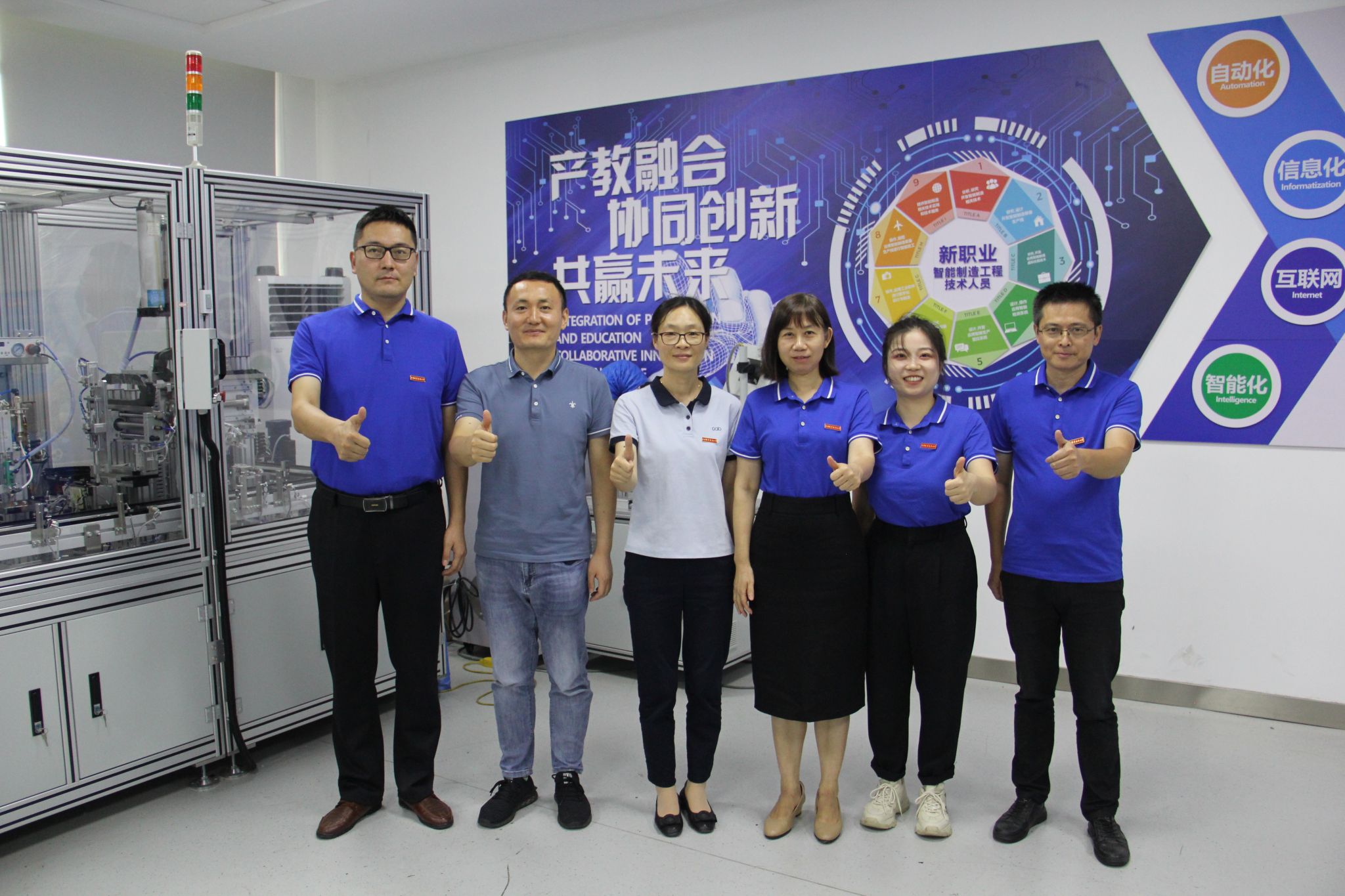 机电一体化技术团队是一支技术技能精湛、教育教学精妙、科研服务精到的结构化教师教学创新团队。团队成员共6人,教授领航、“双师”主力、青年助力,结构合理。团队中有国家课程思政教学名师1人、国家优秀创新创业导师2人、省五一创新能手1人,省高校“青蓝工程”优秀骨干教师1人、省技术能手2人、省科技副总3人。团队同心聚力,技术、教学、服务三位一体,锐意进取、师德师风正,广受学生喜爱。