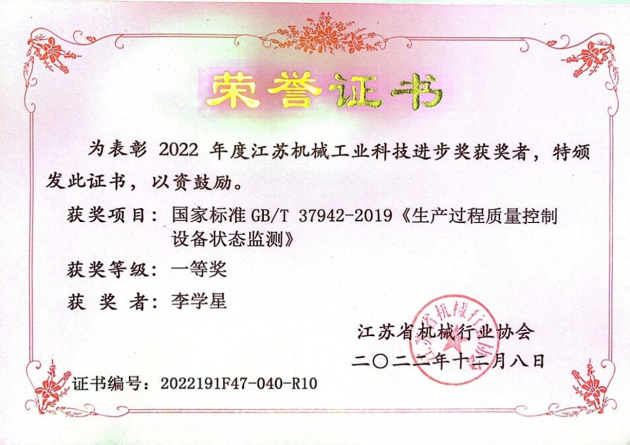 2022年度江苏机械工业科技进步奖一等奖