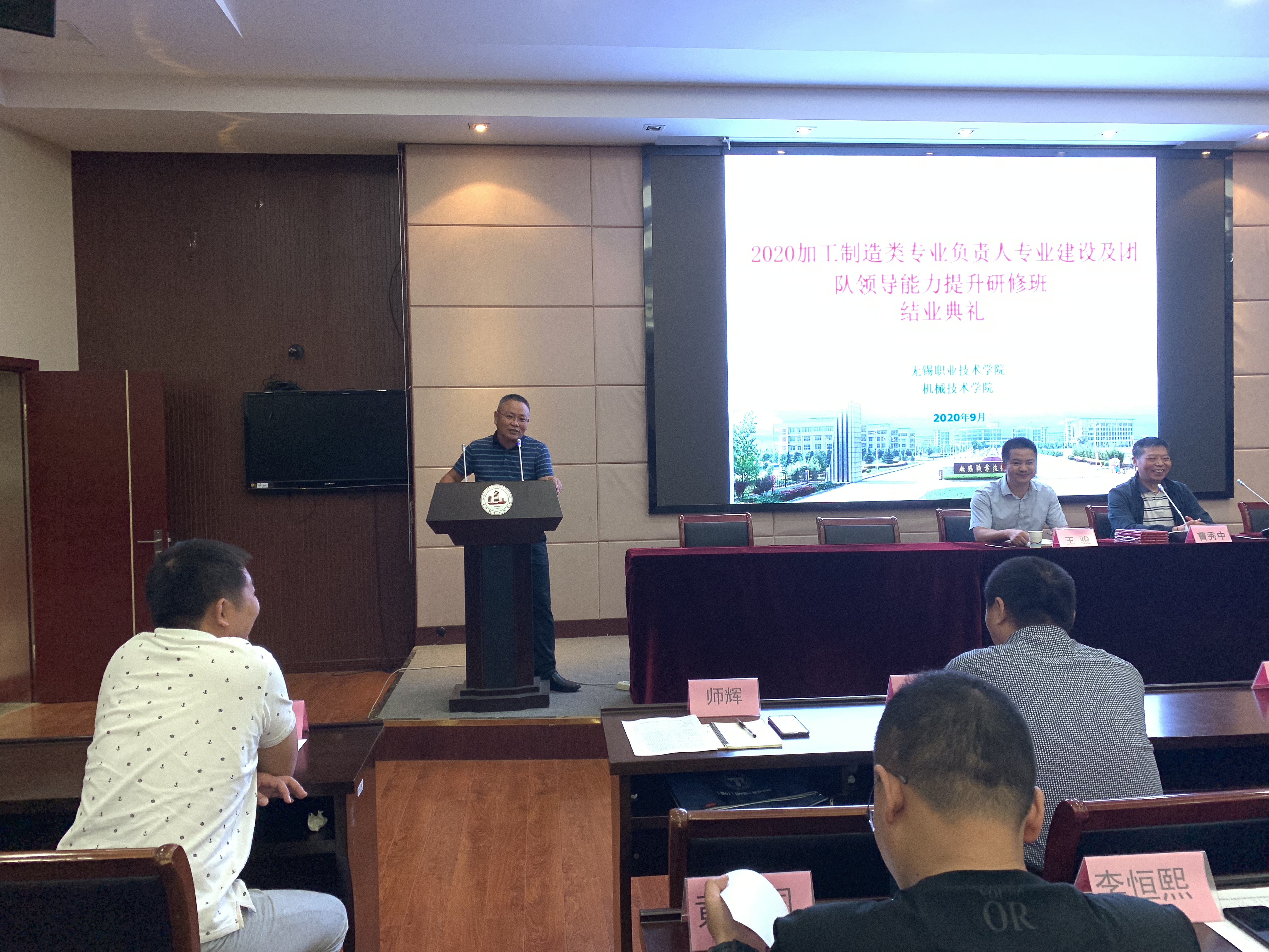 9月19日下午,2020年加工制造类专业负责人专业建设及团队领导能力提升研修培训班结业典礼在国际交流中心二楼会议室举行。机械技术学院院长王骏、副院长曹秀中、班主任老师及全体参训学员出席了结业典礼。
