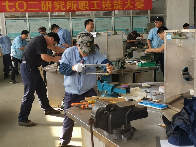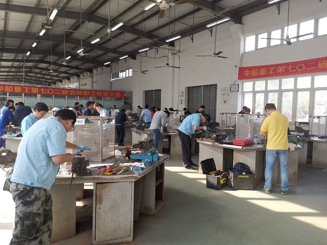 2019年11月5日,中船重工702研究所首届职工技能大赛钳工实际操作环节比赛在学校钳工实训车间举行。45名参赛选手在规定的6小时内,全部完成了制作任务,比赛获得了圆满成功。学校为本次大赛提供了场地、设备、保障和第三方监督等方面的支持,为大赛的成功举办提供了强大助力,得到了企业的赞誉和感谢。