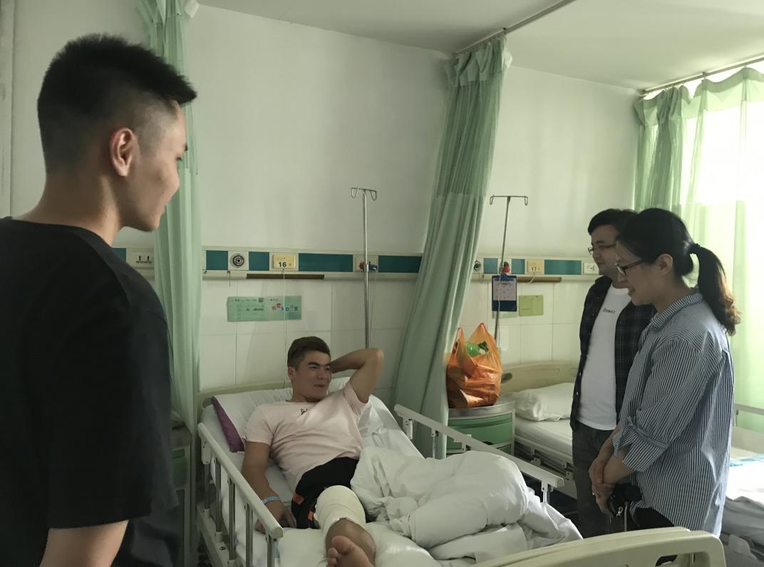 9月24号下午,机械技术学院党总支副书记张静、班主任塔衣尔和两名同学看望了在无锡市第九人民医院骨科B区接受治疗的阿迪力·乃买提,分院领导、老师、同学的关心,让他倍感温暖。