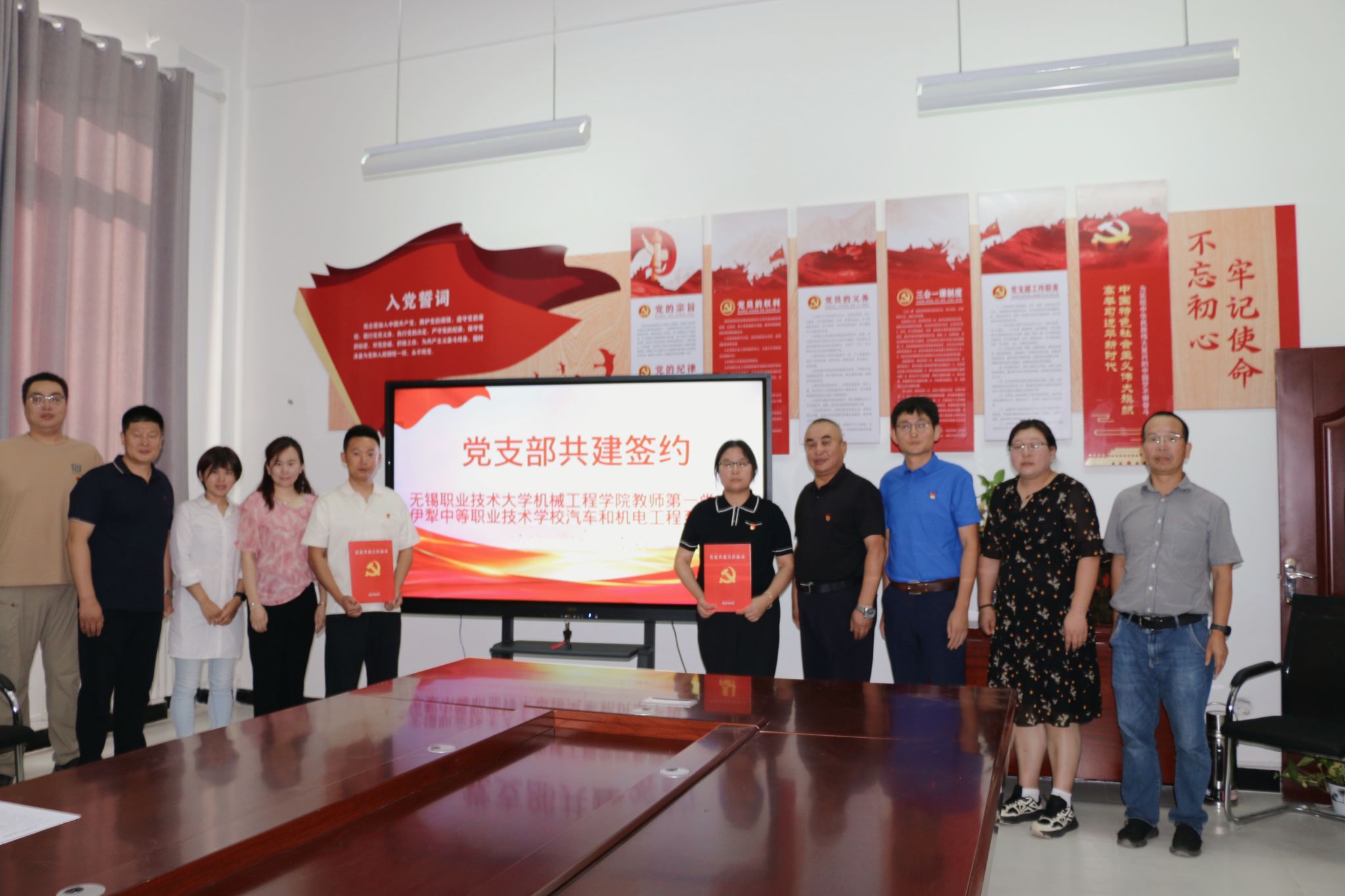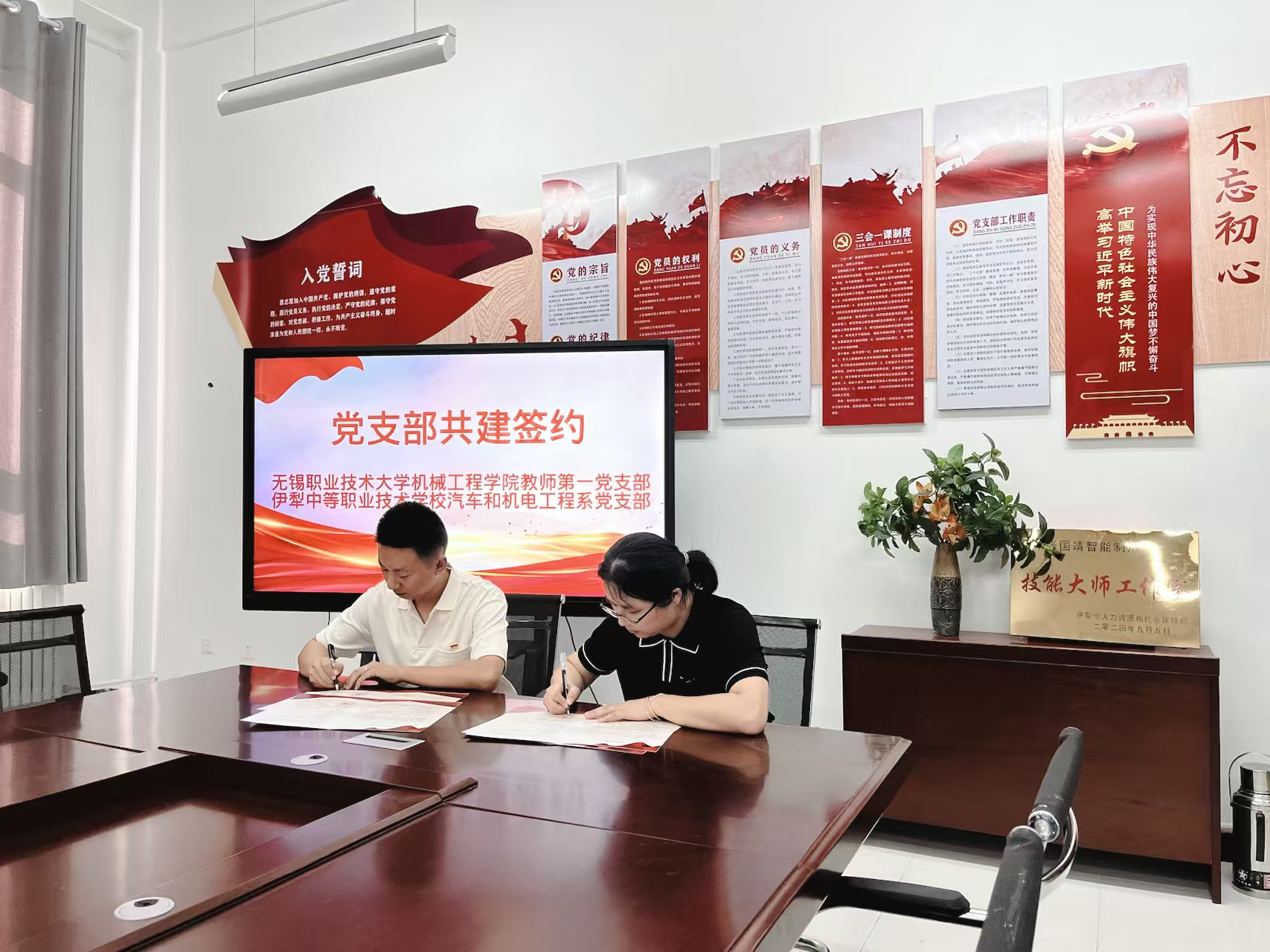8月28日上午,开云官方官网登录入口机械工程学院教师第一党支部与伊犁中等职业技术学校汽车与机电工程系党支部举行党建共建签约仪式。机械工程学院党总支副书记王丽梅、副院长曹澍、教师第一党支部书记苗盈和党员教师代表,伊犁中等职业技术学校党委委员刘志强、汽车与机电工程系党支部书记张国靖、系主任田定康等支部委员和教学负责人共同参加了签约仪式。我院选派援疆的朱耀武、黄晓徐两位教师一并见证了仪式。