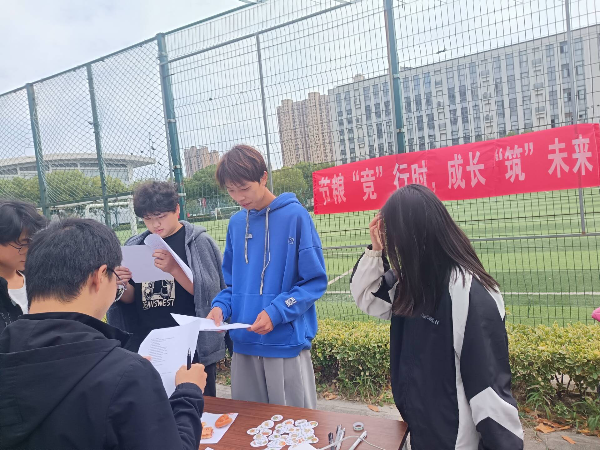 为深入践行社会主义核心价值观,弘扬勤俭节约的传统美德,引导广大学子树立“爱粮节粮”的校园新风尚,11月4日,我院学生会生活部在牡丹园足球场举办了“节粮‘竞’行时,成长‘筑’未来”节约粮食知识竞赛活动,活动通过沉浸式知识竞答、互动式科普讲解等形式,将勤俭节约的中华传统美德转化为生动实践,吸引百余名学子参与,在校园内掀起“厉行节约、反对浪费”的新风尚。