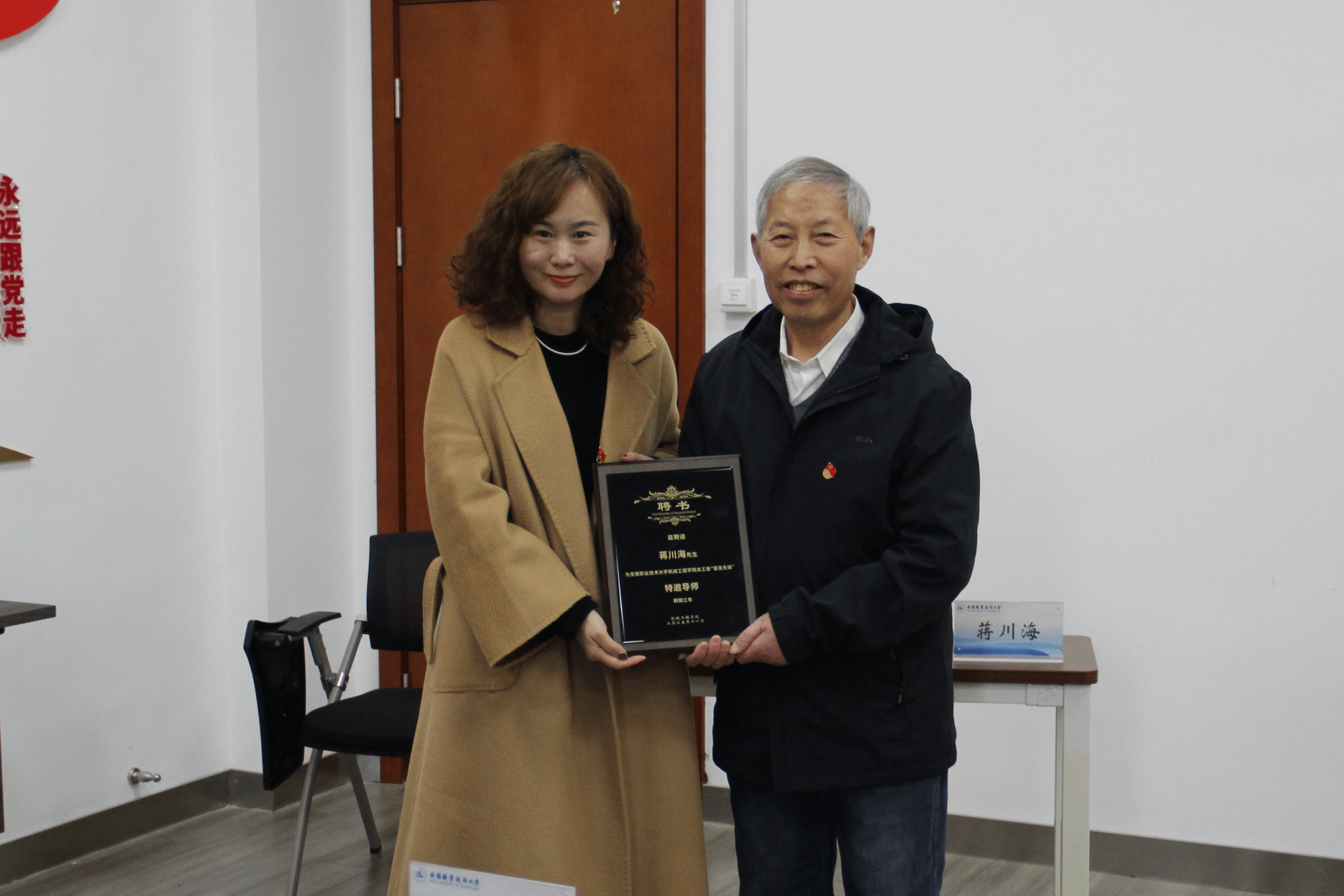 活动现场,机械工程学院党总支副书记王丽梅对蒋老师的到来表示衷心的感谢。王丽梅向各位师生介绍了学院关心下一代工作的基本情况,诚挚感谢蒋川海同志担任学院关工委校外导师,并代表学院关工委为蒋川海老师颁发聘书,正式聘请其为机械工程学院关工委“银发先锋”特邀导师。她鼓励在场各民族青年团员要强化理想信念,在学习生活中互帮互助、同心同行,共同铸牢中华民族共同体意识。