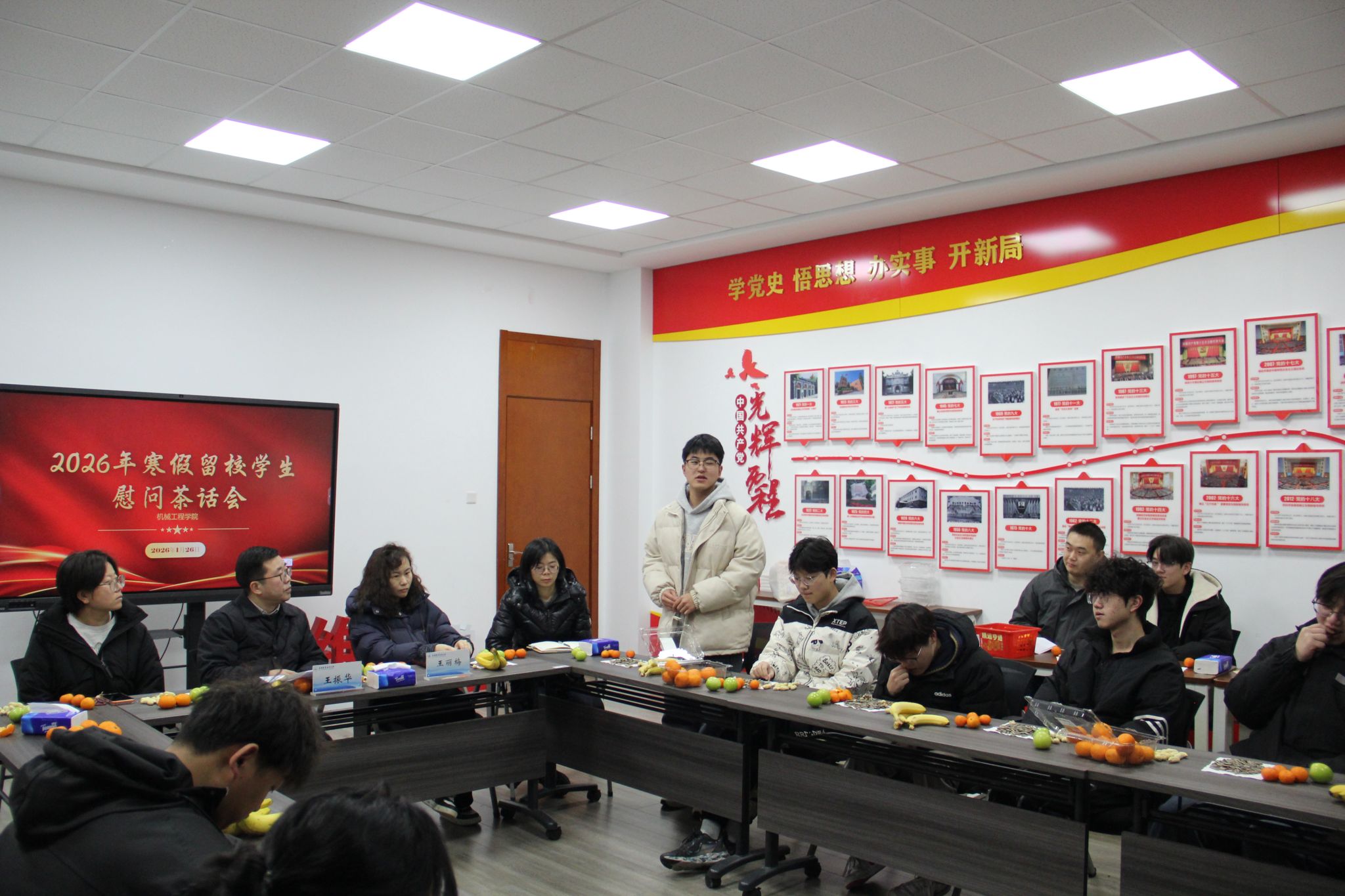寒冬送暖,岁润人心。1月26日机械工程学院在党员活动室举办寒假留校学生慰问茶话会。学院党总支书记王振华、副书记王丽梅,全体辅导员与30余名留校备赛学子齐聚一堂,以心贴心的交流、实打实的赋能,为逐梦学子加油鼓劲,共迎新春。