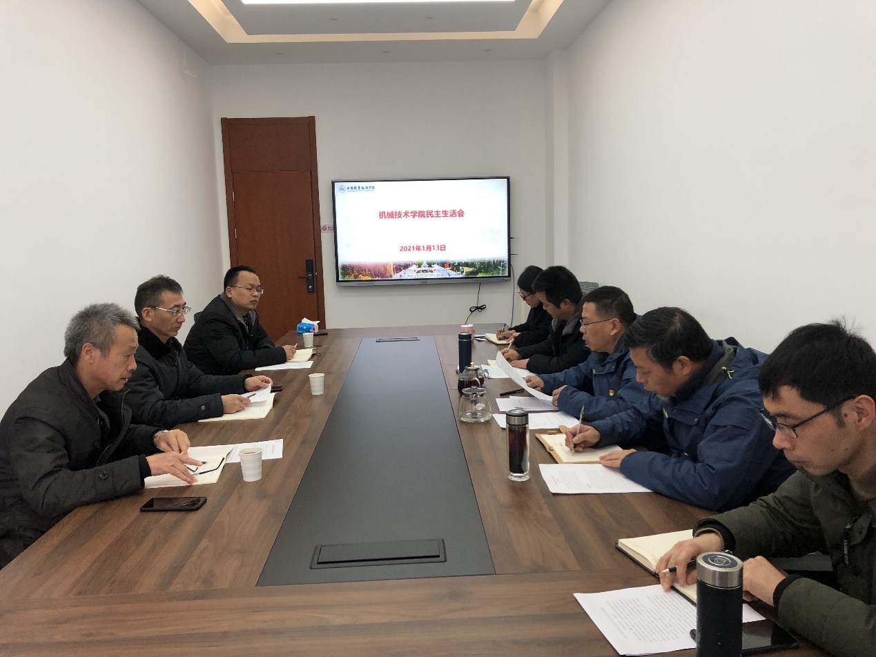 2021年1月13日,机械技术学院党总支组织召开了由领导班子全体成员参加的2020年度党员领导干部民主生活会,校“2020年度党员领导干部民主生活会督导组”第二组组长龚方红校长及组员胡全裕、陈浩两位同志,全程参与了会议。