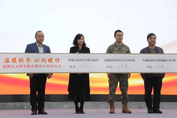 此次,我院与胡埭镇新时代文明实践所携手合作,共同签订文明实践合作共建协议,滨湖区委宣传部副部长、区文明办主任郑建峰为机械工程学院党总支副书记王丽梅老师颁发新时代文明实践志愿领航员聘书,共同推动开展有特色、有创意、有实效的文明实践活动,为新时代文明实践活动汇聚机械学院党建智慧、凝聚机械学院青春力量。