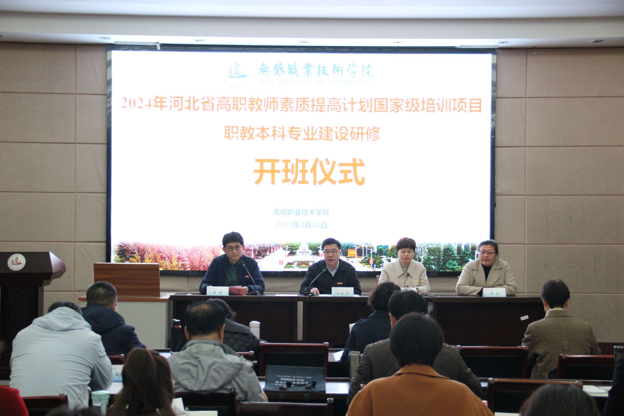 2025年3月10日,由无锡职业技术学院机械工程学院承办的“河北省职业院校教师素质提高计划——职教本科专业建设研修培训班”在我院正式拉开帷幕。来自河北省各职业院校的三十多位教师齐聚一堂,开启为期两周的专题研修,共探职业教育高质量发展新路径。会议由机械工程学院副院长曹澍主持,机械工程学院党总支书记王振华、继续教育学院副院长曹冬美等老师参加了开班仪式。