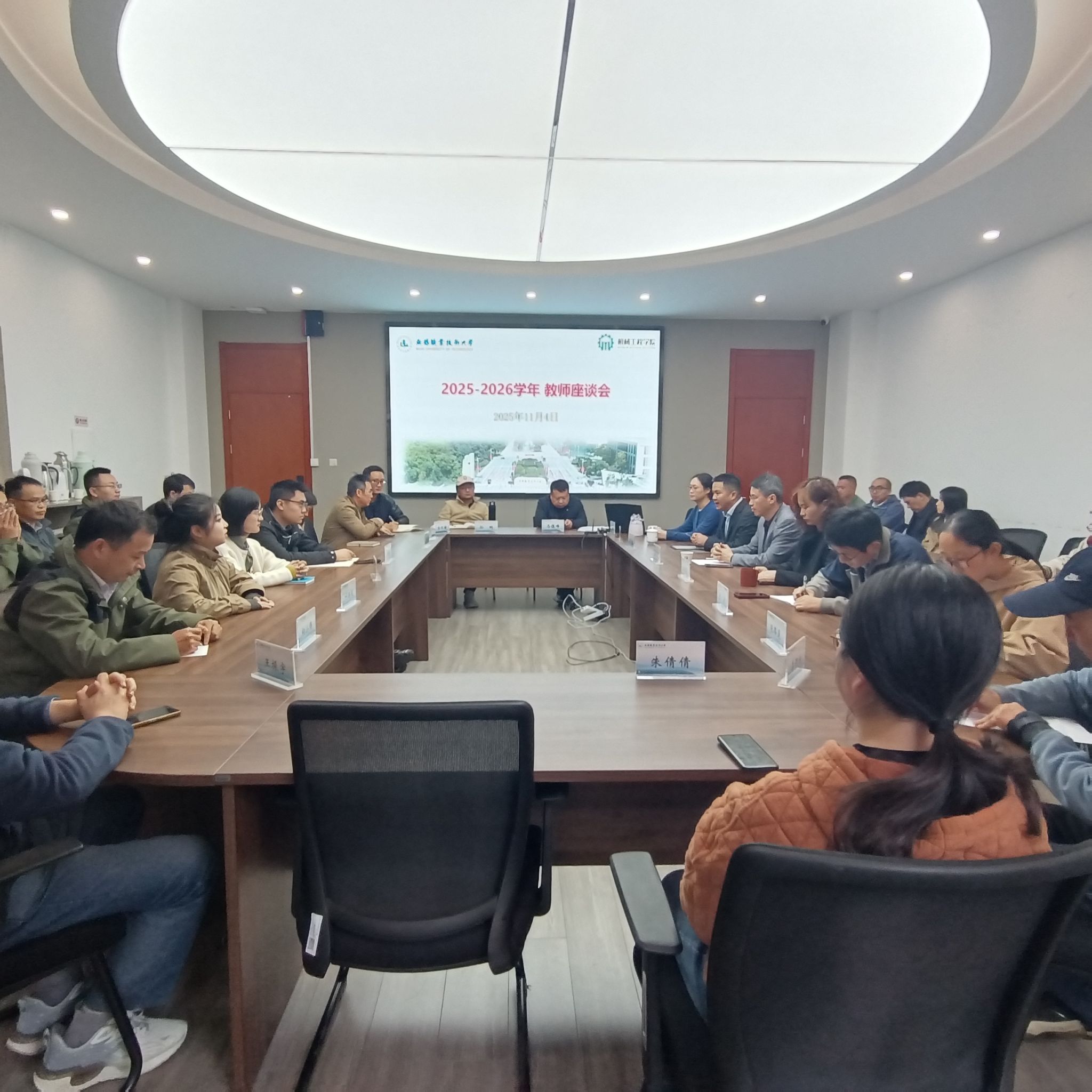 2025年11月04日,机械工程学院2025-2026学年教师座谈会在工业中心会议室召开,学院领导班子成员及教师代表三十余人参加会议,会议由机械工程学院院长王骏主持,副校长奚茂龙出席会议并作总结发言。