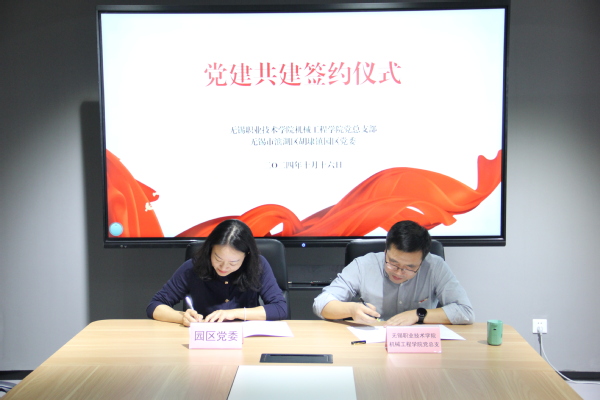 无锡胡埭工业园企业总数达2600余家,亿元企业56家,上市企业及其生产基地19家,是无锡市滨湖工业发展的主阵地、先进制造业的重要承载地,也是打造 九龙湾智造城 的核心板块。本次共建双方将以此次党建联盟共建为契机,围绕党建中心工作,不断拓展共建形式和内涵,多维度常态化开展交流合作,按照“优势互补、共联共建、互带互动、共谋发展”的原则,实现党建带动教育科技人才合作,谱写现代产业学院新篇章。