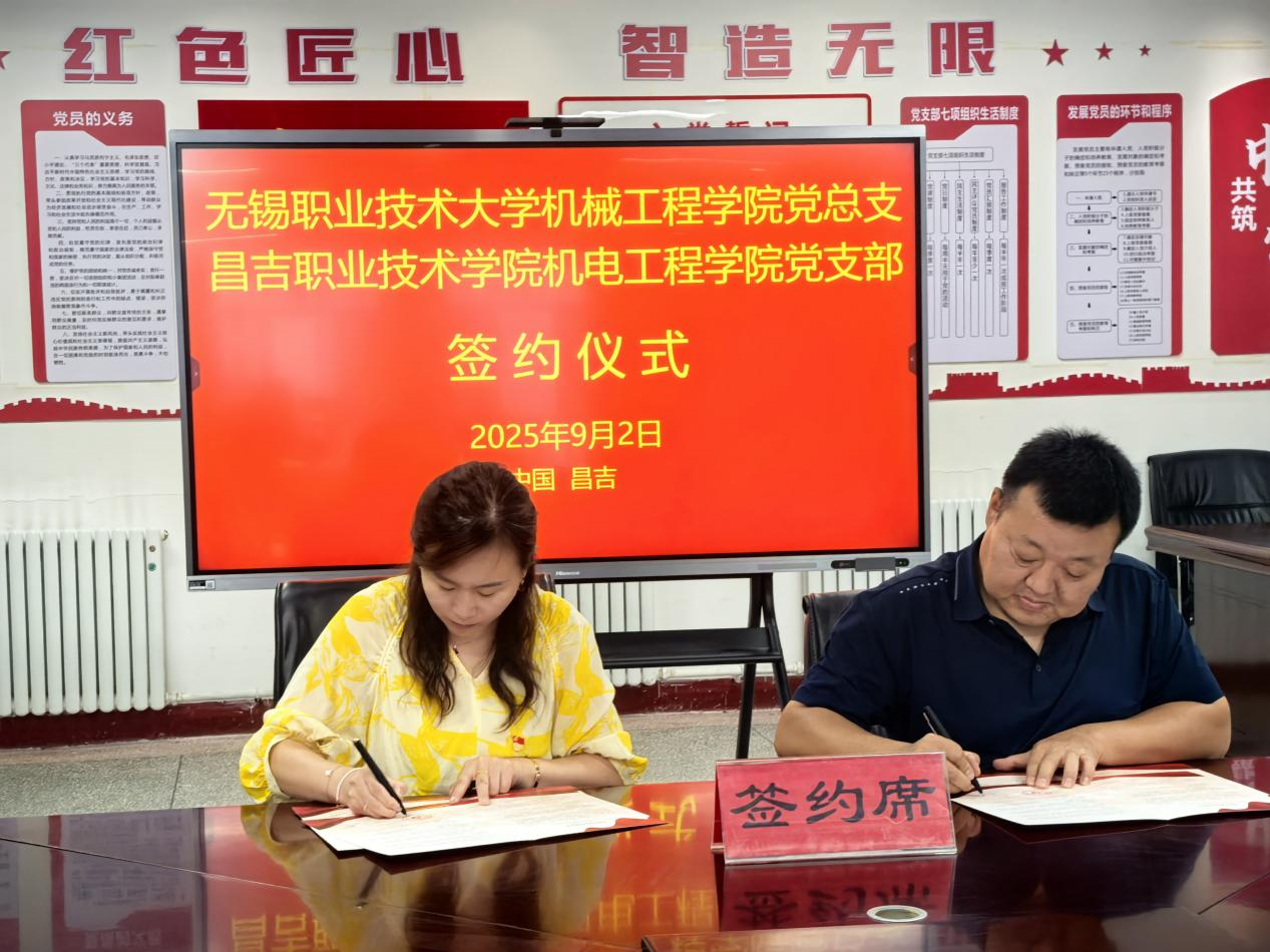9月1日至2日,学院又分别与新疆应用职业技术学院机电工程学院、昌吉职业技术学院机电工程学院开展党建共建活动,分别签署共建协议,明确围绕组织建设互促、党员队伍互动、专业发展互联等维度开展合作,打造党建与业务双融双促典范。期间,以支部书记苗盈为代表的学院骨干教师,与新疆应用职业技术学院青年教师举行“青蓝结对”签约仪式,旨在通过“传帮带”帮助青年教师快速成长,推动双方教学理念与方法深度融合。学院副书记王丽梅作《职业院校辅导员工作品牌建设——辅导员与学生共成长》专题辅导,结合江苏省高校首批辅导员名师工作室“梅姐驿路”的实践经验,分享育人经验,为昌吉职业技术学院辅导员队伍建设和学生工作创新提供了有益借鉴。