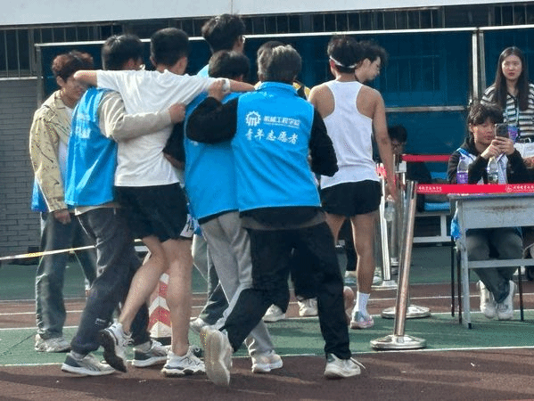 热情服务,用心志愿。运动会现场,志愿者发挥自身优势,全方位开展服务。其中部分志愿者在体育场前引导运动员入场,还有一些志愿者在观看台维护观众秩序。负责宣传工作的志愿者撰写加油稿,通过校园广播,传递鼓励与支持。终点处,志愿者主动上前搀扶运动员,及时递上温水和补给品。大家用行动确保赛事有序进行。运动员奋力拼搏的身影与志愿者嘹亮有力的加油声交相辉映,共同构成运动会如火如荼的景象。