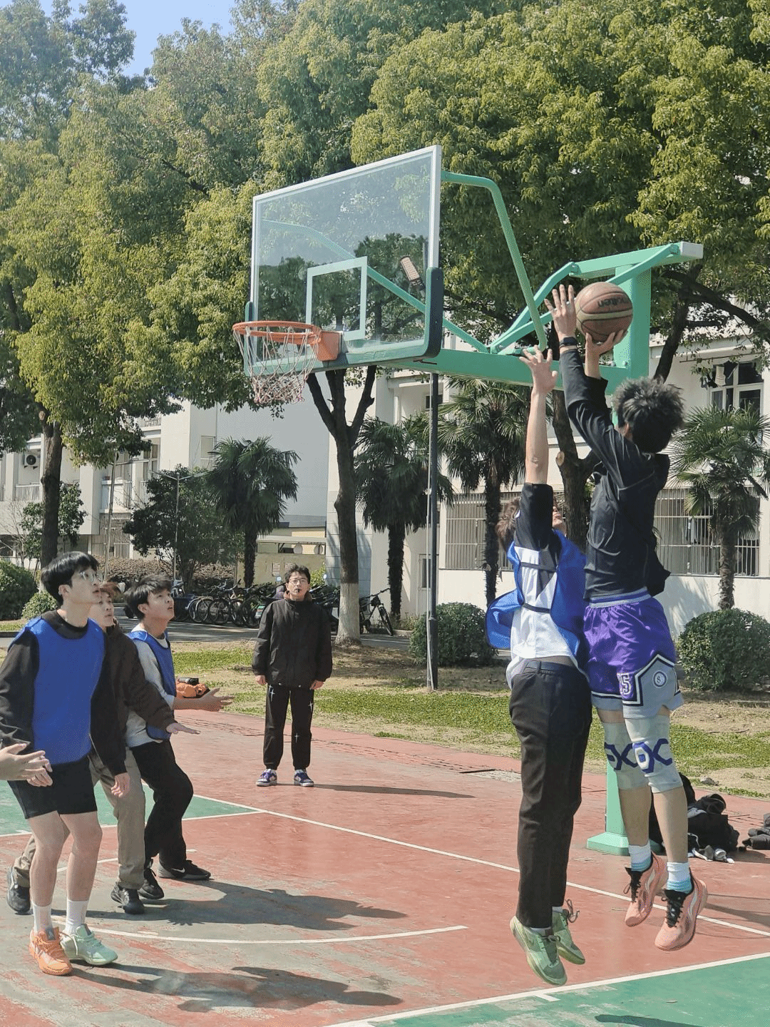 此次活动,共8支队伍参与,每组5名成员,按照赛前抽签的顺序晋级比赛。来自不同学院、不同班级的同学们化身篮球健将,他们目光坚定、身姿矫健,每一次精准传球,每一个利落投篮,都展现了青年学子高超的球技和团队协作精神。机械学院的同学们不仅在课堂上思维敏捷、逻辑严谨,在球场上同样毫不逊色,凭借着顽强毅力和拼搏精神,诠释青春的激情与活力。