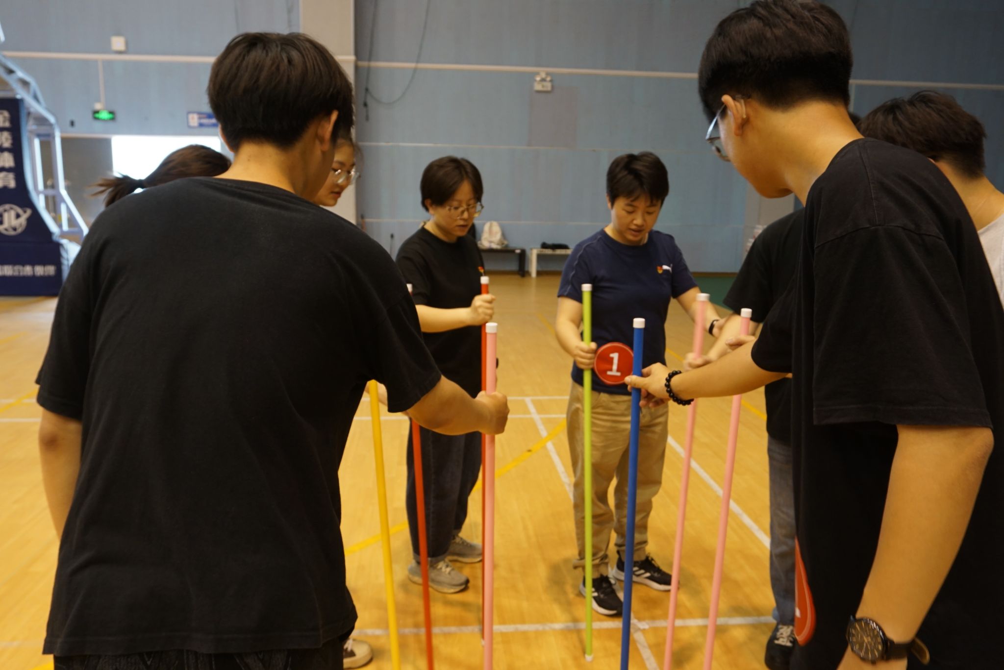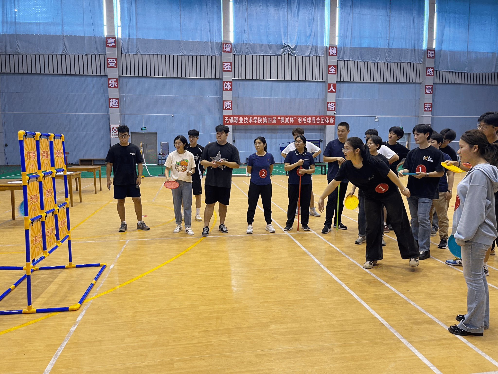 “廉洁不倒”团队协作环节中,各队通过默契配合保持塑料杆不倒的同时完成移动。教师党员苗老师表示:“这个项目就像党风廉政建设,需要每个成员保持思想定力,任何一人松懈都会导致整体失衡,我们要在协作中增进信任,让廉洁成为团队共同的价值追求。”随后的"“知廉击腐”飞盘打靶环节,师生们用飞盘精准击落“贪腐”“作假”等标靶,寓教于乐中筑牢拒腐防变的思想防线。