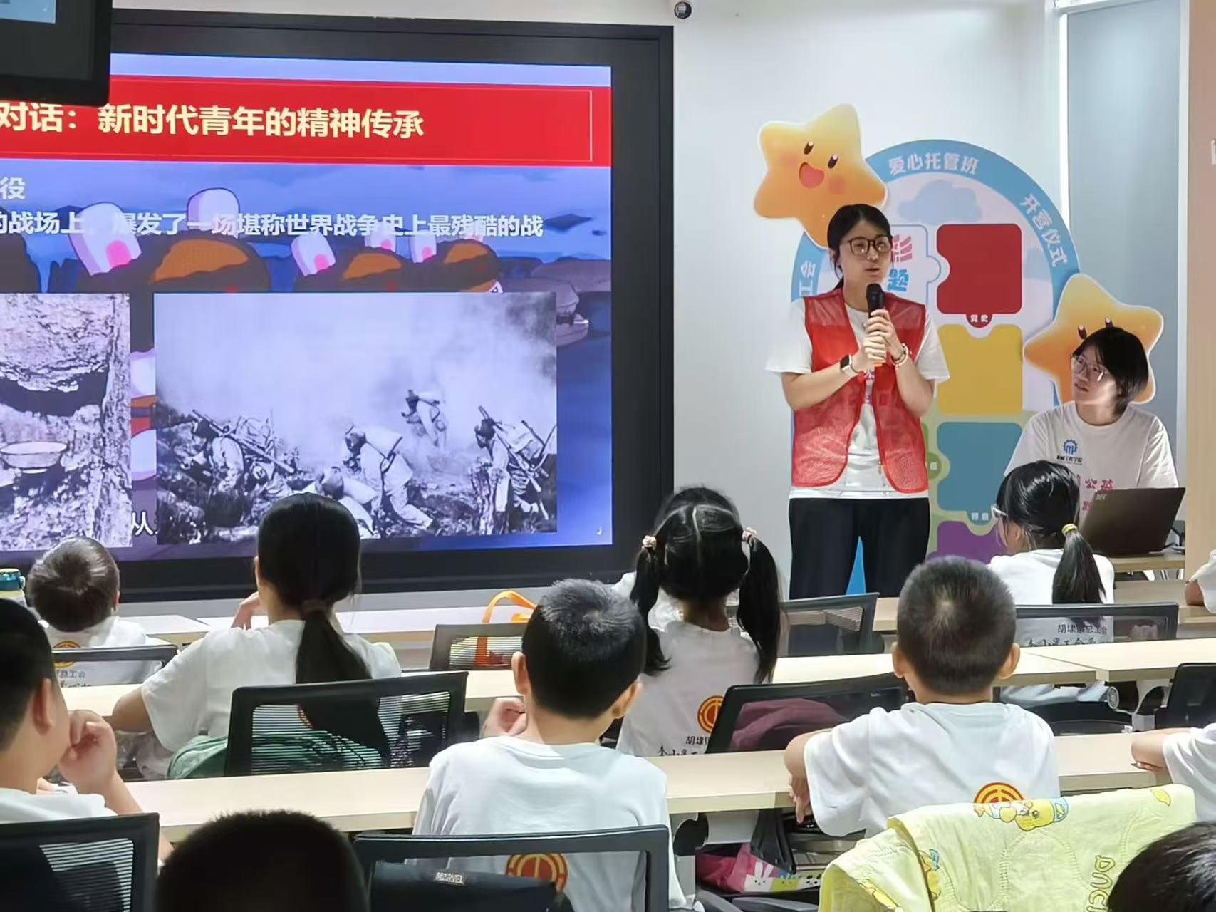活动现场,实践团成员以“抗美援朝:保家卫国的英雄史诗”为主题,精心打造沉浸式红色课堂。借助高清历史影像、详实战役地图、搭配生动的PPT课件,将长津湖战役的冰血交融、上甘岭战役的浴血坚守等重大战役娓娓道来。当屏幕中还原出黄继光舍身堵枪眼的震撼瞬间,孩子们屏息凝神;听到杨根思“人在阵地在”的铮铮誓言时,不少青少年眼眶湿润。互动环节中,面对“志愿军为何能在极端艰苦条件下坚持作战”的疑问,志愿者李明结合《最可爱的人》纪录片片段,深入浅出地解答:“这不仅是为了守护身后的万家灯火,更是为了捍卫和平正义,这种精神永远是中华民族最宝贵的财富。”