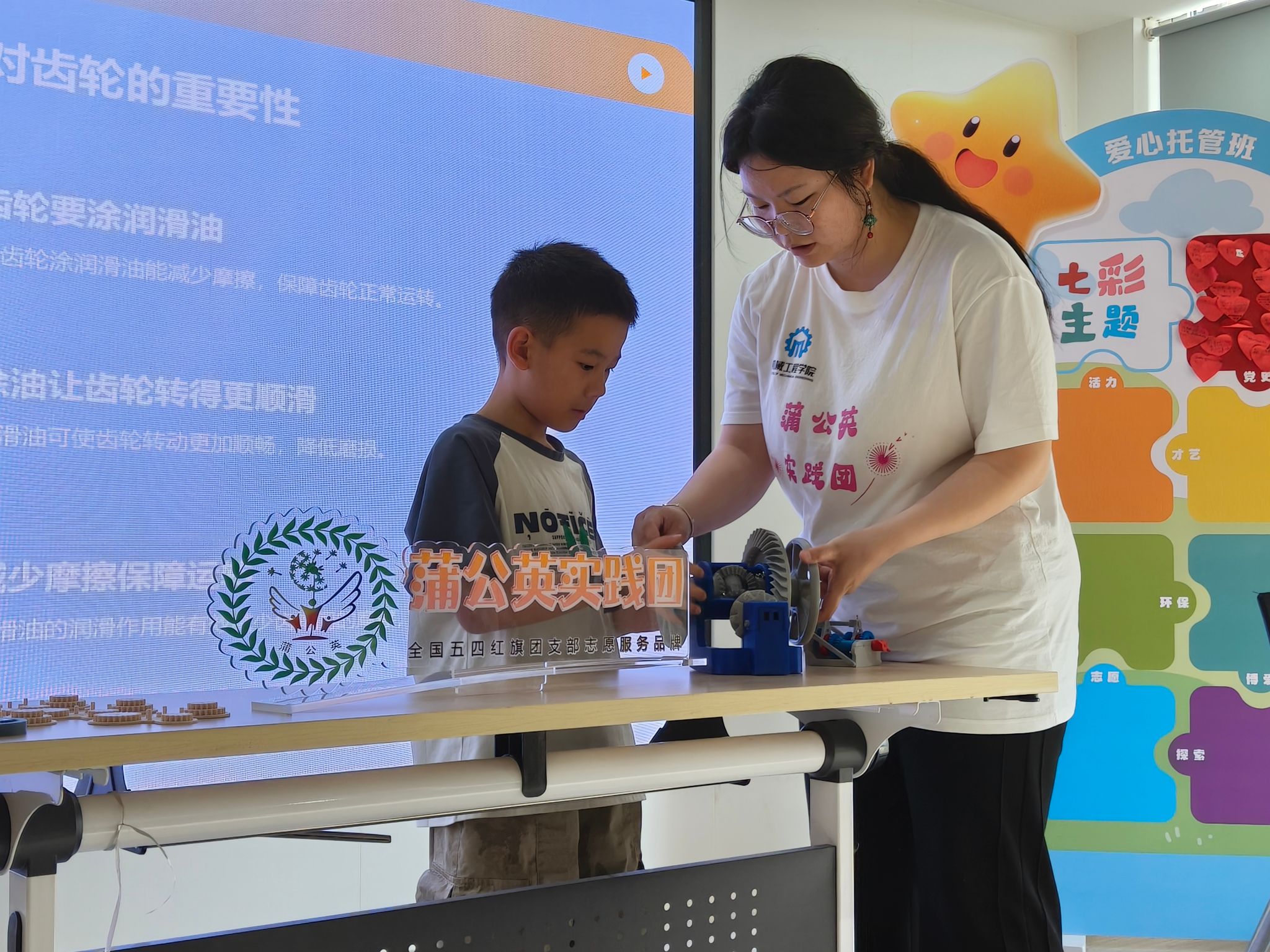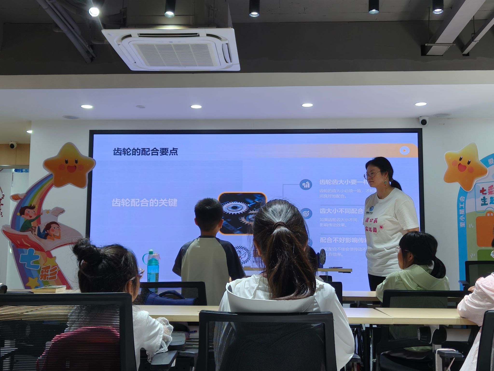 为促进科技普及与乡村振兴的紧密联结,激发胡埭镇社区的小朋友们对机械运动奥秘的探索欲望,7月2日,“蒲公英”支教实践团走进无锡胡埭镇园区党群服务中心为当地小朋友们带来了一场别开生面的“齿轮里的中国智造”科普课堂。