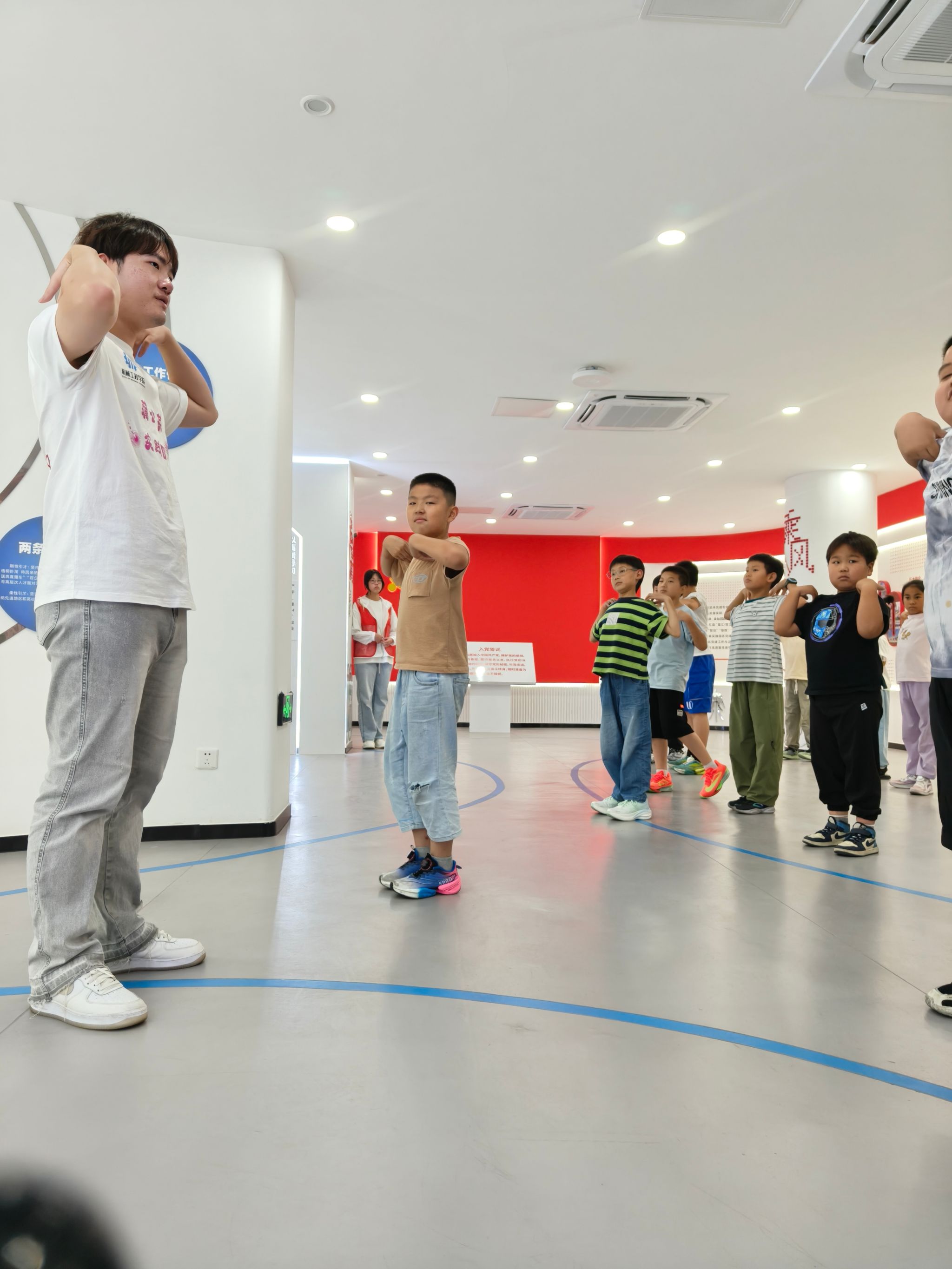 志愿者团队创新设计的“齿轮韵律操”将科技与美育完美融合。孩子们时而模仿行星齿轮公转自转舒展四肢,时而模拟凸轮机构起伏锻炼核心力量,久坐产生的疲惫在充满机械美感的律动中烟消云散。