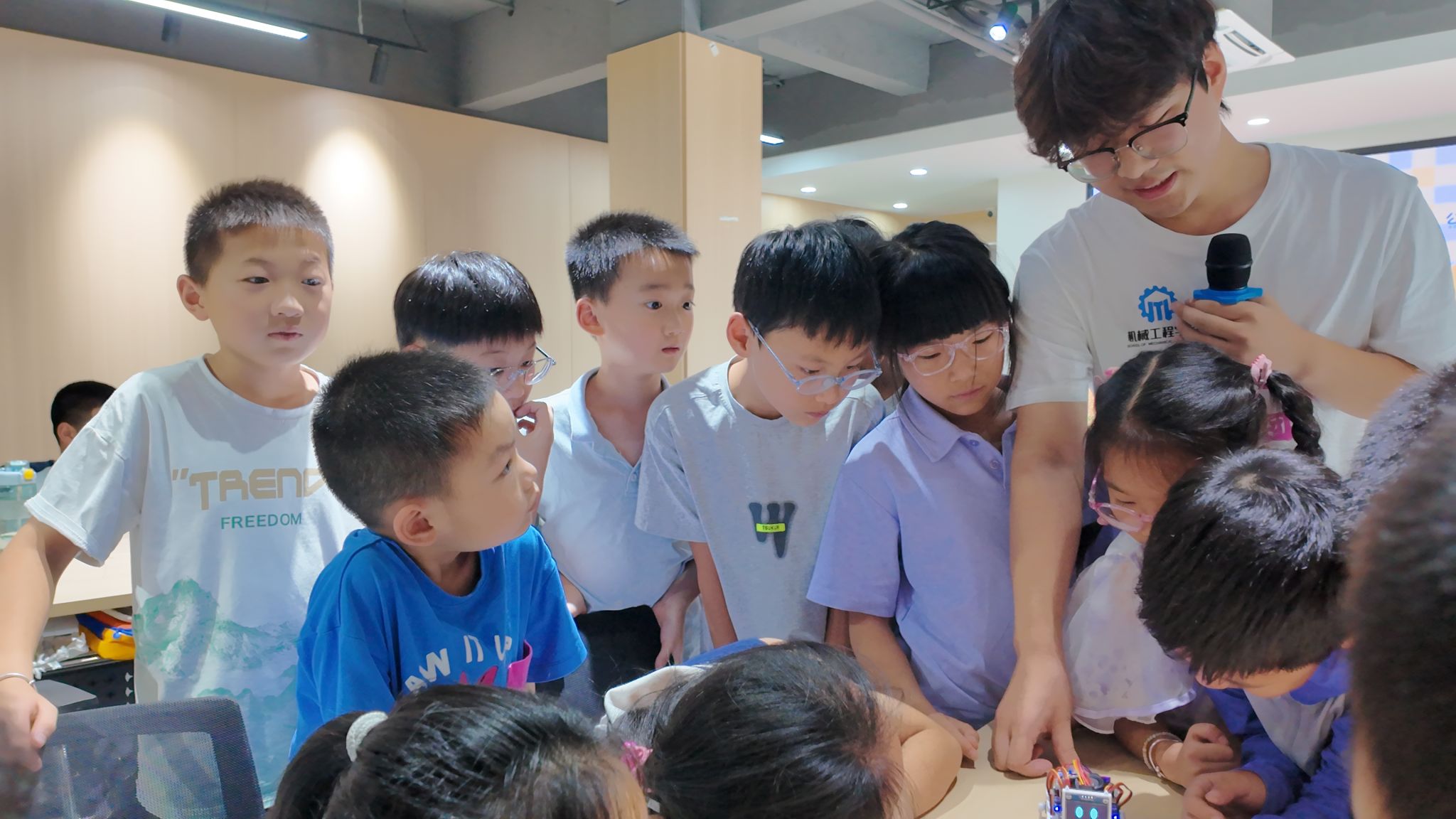 为激发青少年对前沿科技的兴趣与探索热情,培养其逻辑思维与动手能力。7月3日,“蒲公英”支教实践团走进胡埭镇园区党群服务中心,立足科学启蒙的关键期,通过寓教于乐的方式开展机器人知识与纸电路原理教学活动。以“小智”机器人现场互动和富有趣味的手工制作环节为载体,以生动有趣的形式展示前沿科技魅力,激发并培养孩子们的创新思维,通过互动实践活动,培养团队协作与工程实践能力,提升跨学科思维与创新能力。
