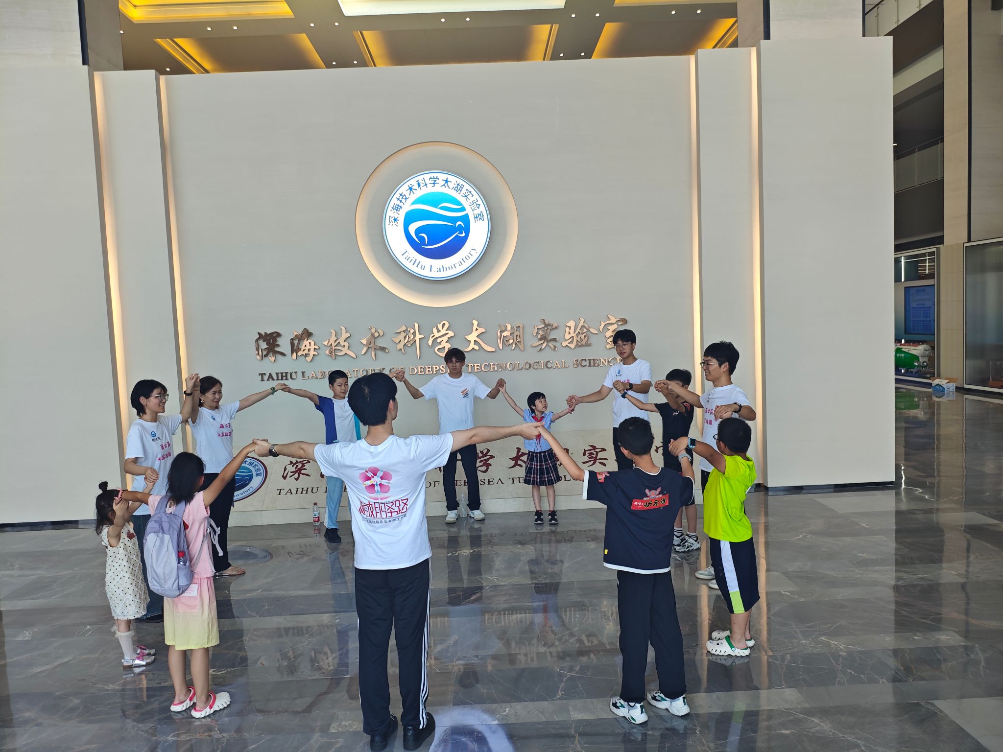 活动当天,孩子们怀着满满的期待和好奇心,跟随“蒲公英”支教实践团的成员们,踏入了中国船舶科学研究中心深海技术科学太湖实验室。这个实验室是国家级深海科技研究的重要基地,致力于推动我国深海探测技术的发展与创新,实验室内陈列着我国深海探测领域的“明星”——“蛟龙号”“深海勇士号”“奋斗者号”等载人潜水器的实物模型,这些装备都是我国在深海科技领域取得的重大突破成果。