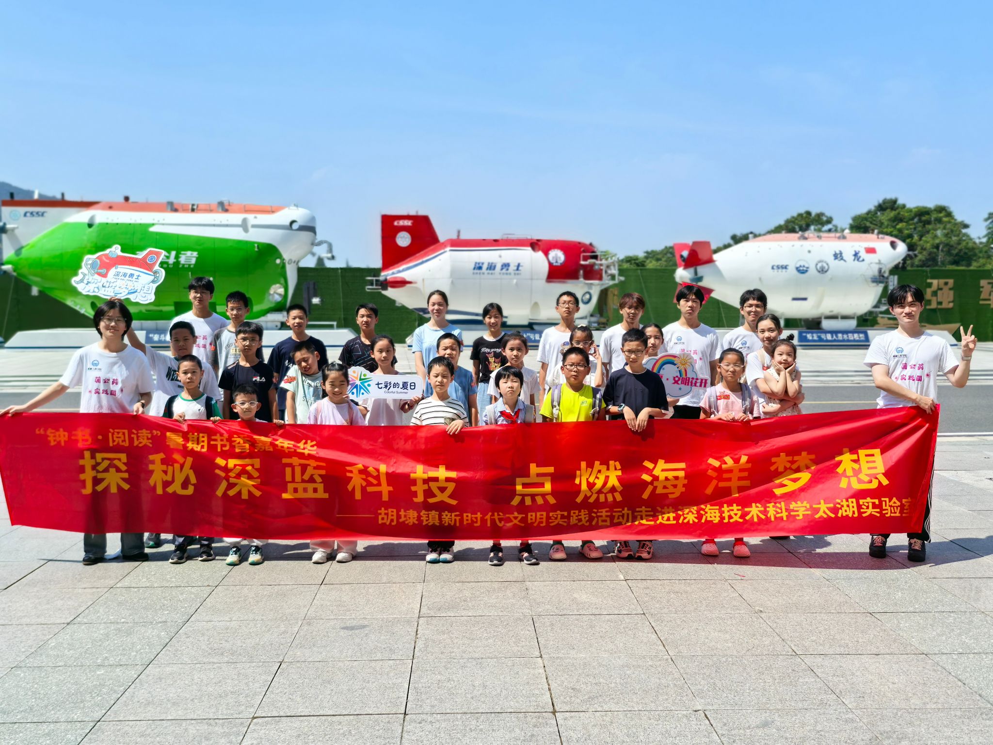 为深化实践育人成效,激发青少年科学探索精神,7月4日,“蒲公英”支教实践团成员带领胡埭镇新时代文明实践中心32名中小学生走进中国船舶科学研究中心深海技术科学太湖实验室,开展“探秘大国重器,点燃深海梦想”主题研学活动,这次活动不仅让孩子们近距离感受我国深海科技的伟大成就,也激发了他们对科学技术的浓厚兴趣,为未来的科技人才培养打下了坚实的基础。