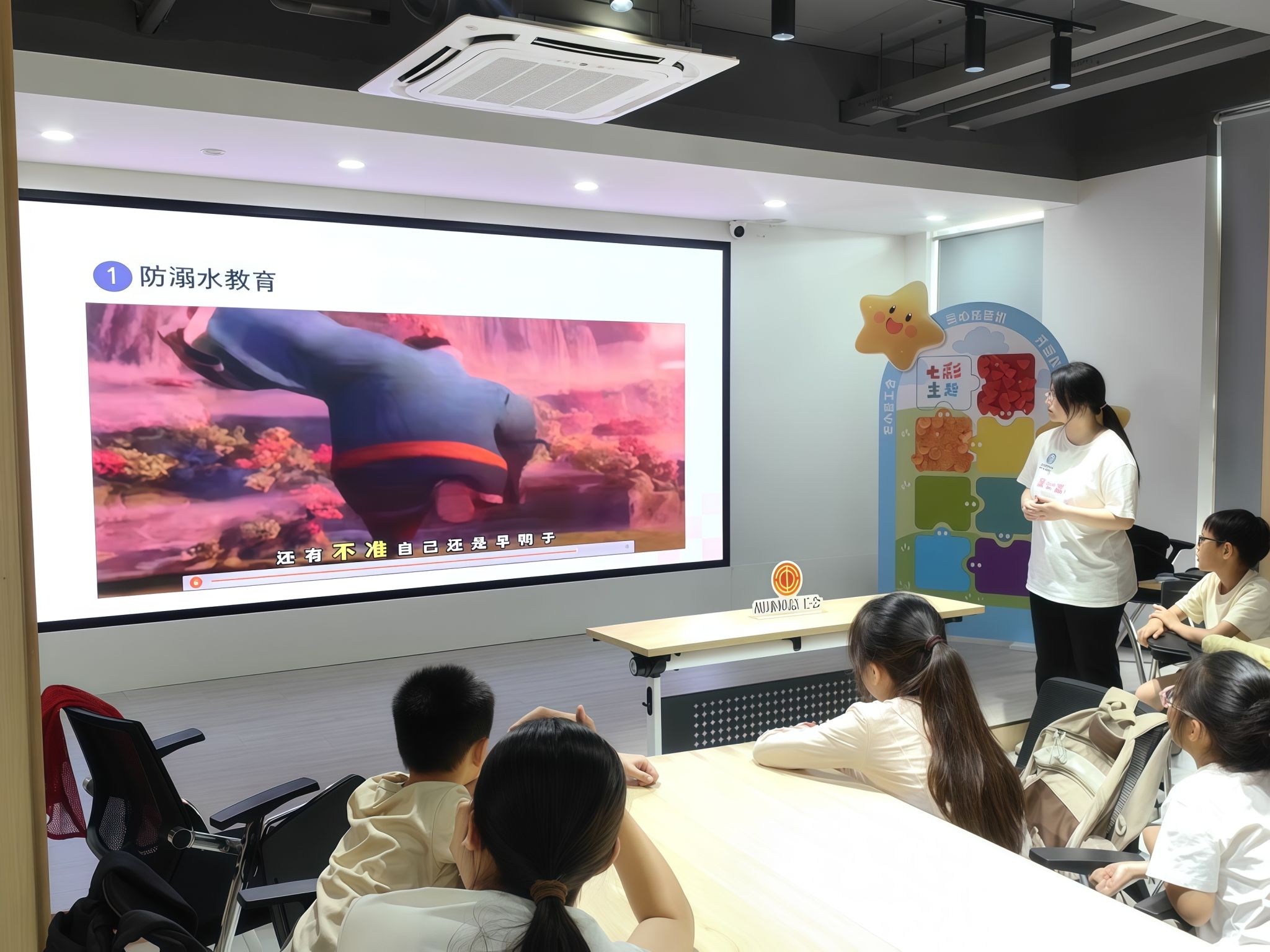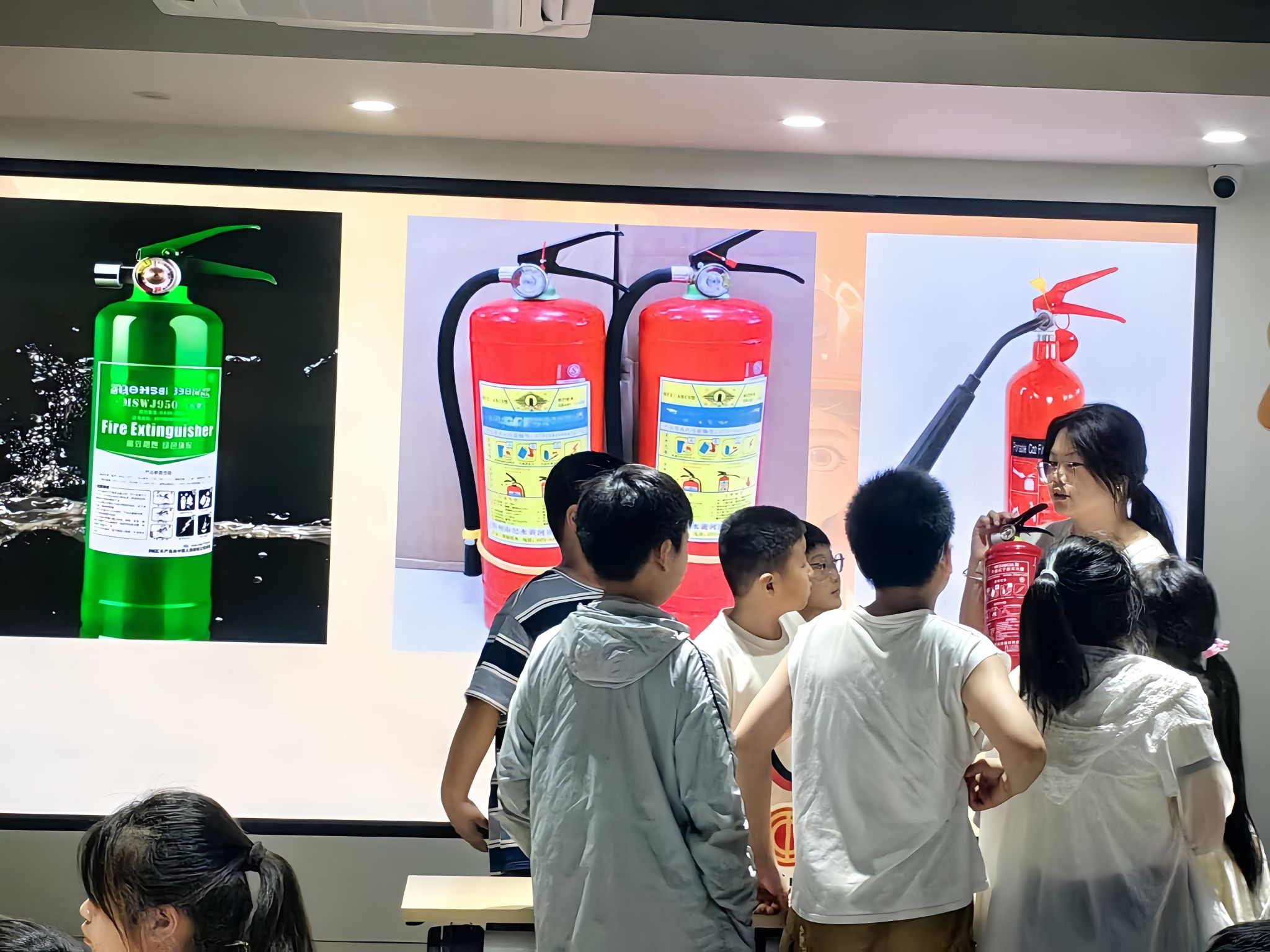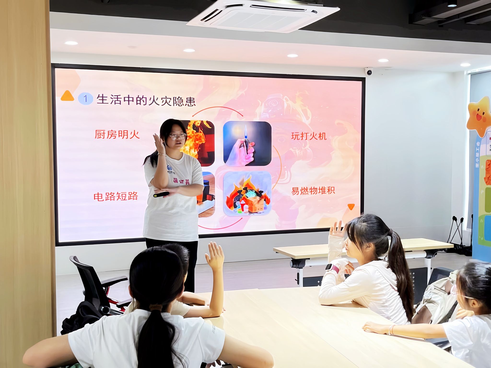 实践团成员通过图片和视频,向孩子们展示了生活中的火灾隐患,如厨房明火、玩打火机、电路短路和易燃物堆积等。随后,他们详细讲解了火灾的应急处理方法,包括如何正确拨打119、灭火器的使用与分类等。在防水安全方面,实践团成员向孩子们介绍了“六不”原则:不私自下水游泳,不擅自与他人结伴游泳,不在无家长或教师带领的情况下游泳,不到无安全设施、无救援人员的水域游泳,不到不熟悉的水域游泳,不熟悉水性的学生不擅自下水施救。此外,他们还展示了安全设施完备的游泳场所应有的救生设备、急救设备、安全警示标识和救生观察台等,让孩子们了解在安全的环境中游泳的重要性。