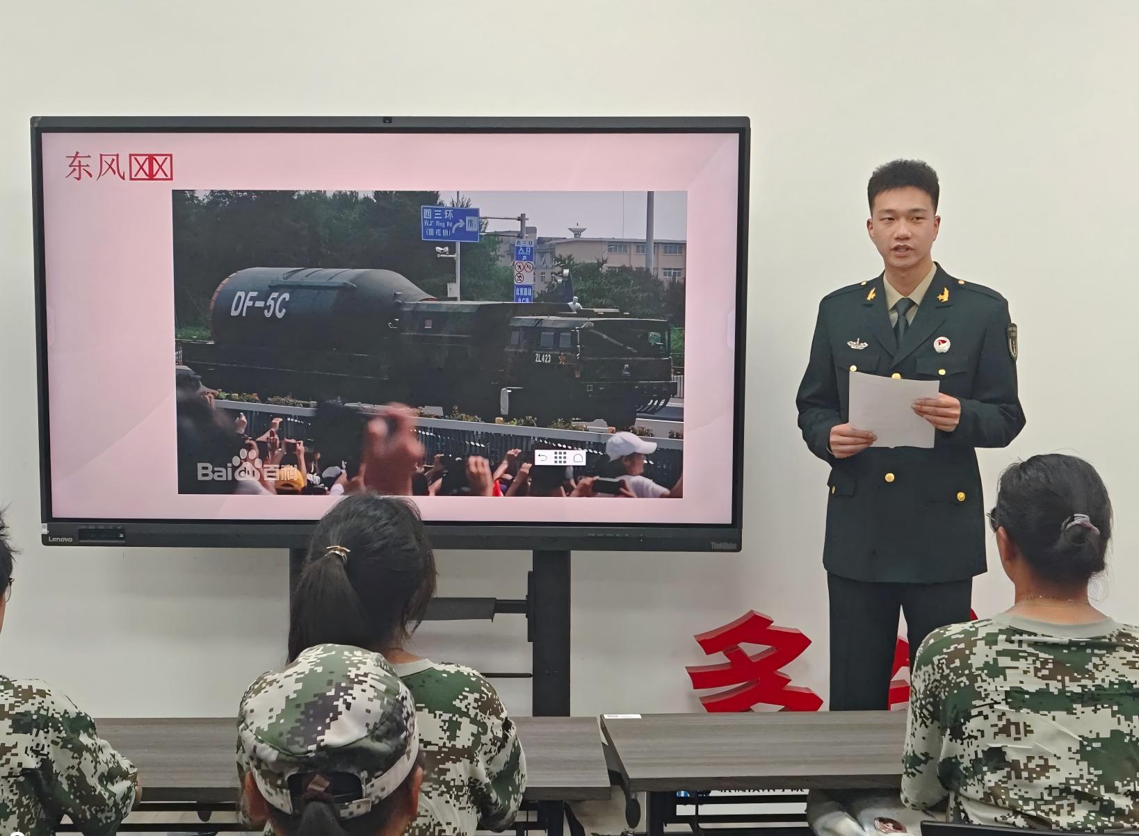 “海军未必见过海,空军未必摸过飞机,而我,也未曾亲眼目睹导弹腾空。”曾服役于火箭军某部的刘振煜这样回忆。他借助“东风导弹”的讲解,分享了自己在军营的日与夜——夏日顶着四十多度的高温坚守哨位,冬日裹紧大衣仍难抵刺骨寒风。老一辈“苦熬不苦熬”的精神,早已深深烙印在他心中。武器装备在迭代更新,但每一个战位的坚守从未改变——“国防力量的每一点增强,都是无数人在岗位上‘钉’出来的。”
