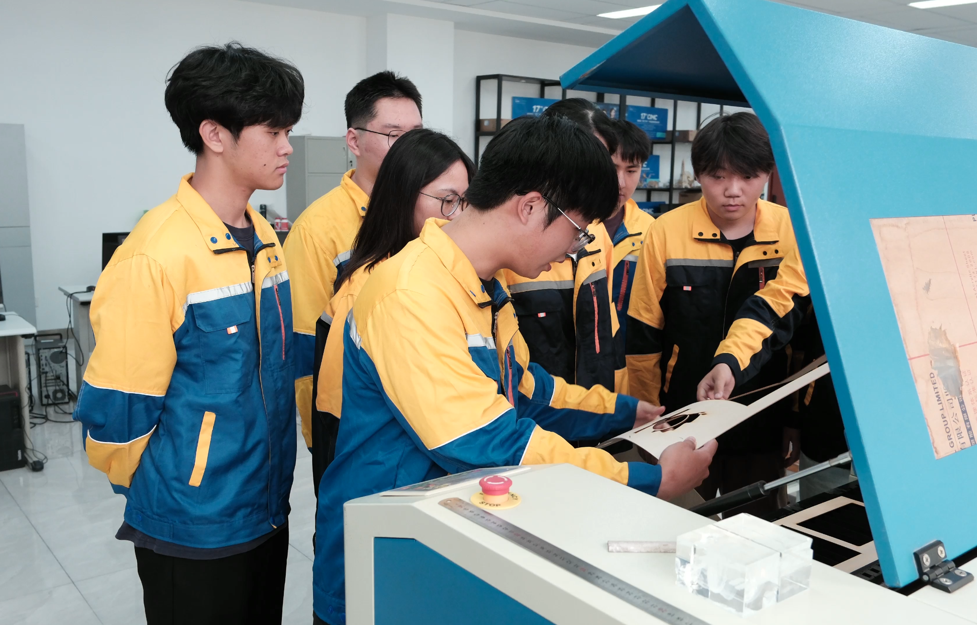 激光镌刻,铭记辉煌时刻此外,师生们还巧妙运用激光雕刻木制切割技术,创作了一系列饱含“国庆”元素的工艺品。五星红旗、天安门、中华人民共和国万岁元素被精准地雕刻在木板上,光影交错间,既展现了科技的精准之美,又传递出节日的欢庆与历史的厚重。