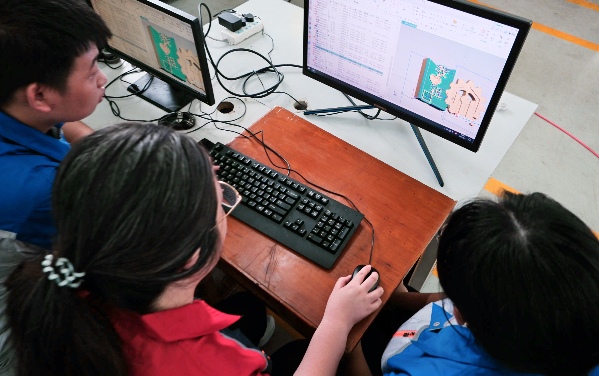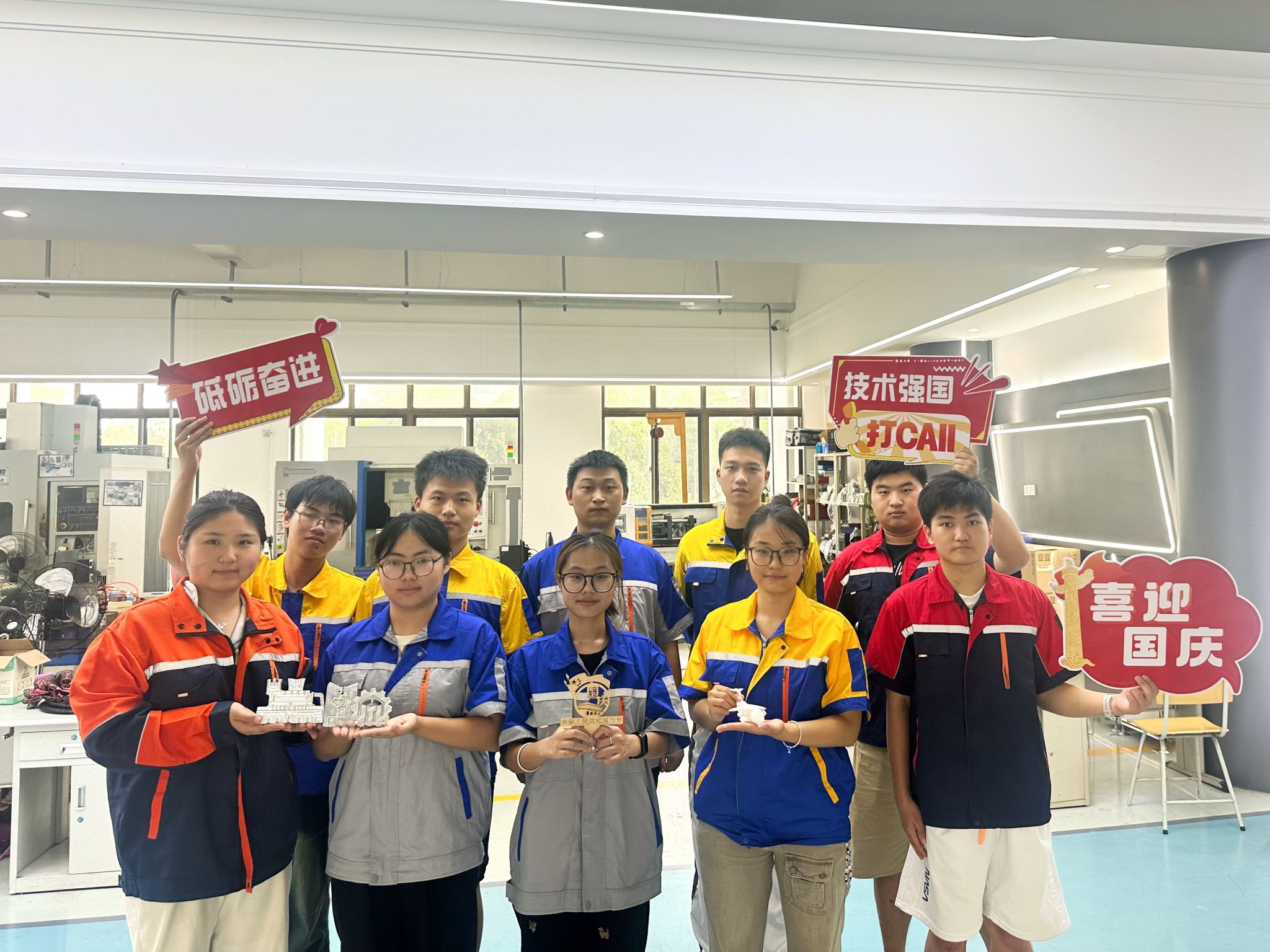精雕细琢,铸就爱国丰碑在学院的模具加工中心,学生马俊杰正全神贯注地操作着精密机床随着铣刀在铝材上精准地游走,一座微缩而庄严的“天安门”模型逐渐显现出清晰的轮廓。每一个棱角,每一处细节,都凝聚着他对技艺的追求和对祖国的热爱。项目成员们表示“选择‘天安门’,是因为它是祖国的象征”“我想用我们机械人最擅长的切削加工,将这块坚实的铝锭,变成我心中最伟大的建筑。”与此同时,专业教师李薇运用三维建模技术“我爱祖国”这一深情告白与学院的徽标巧妙地融合在一起,通过精密加工设备刻印在铝制底座上。从数字世界的精准建模到物理世界的切削雕琢,学院师生用不同的方式,共同完成了对爱国情怀最“硬核”的表达。