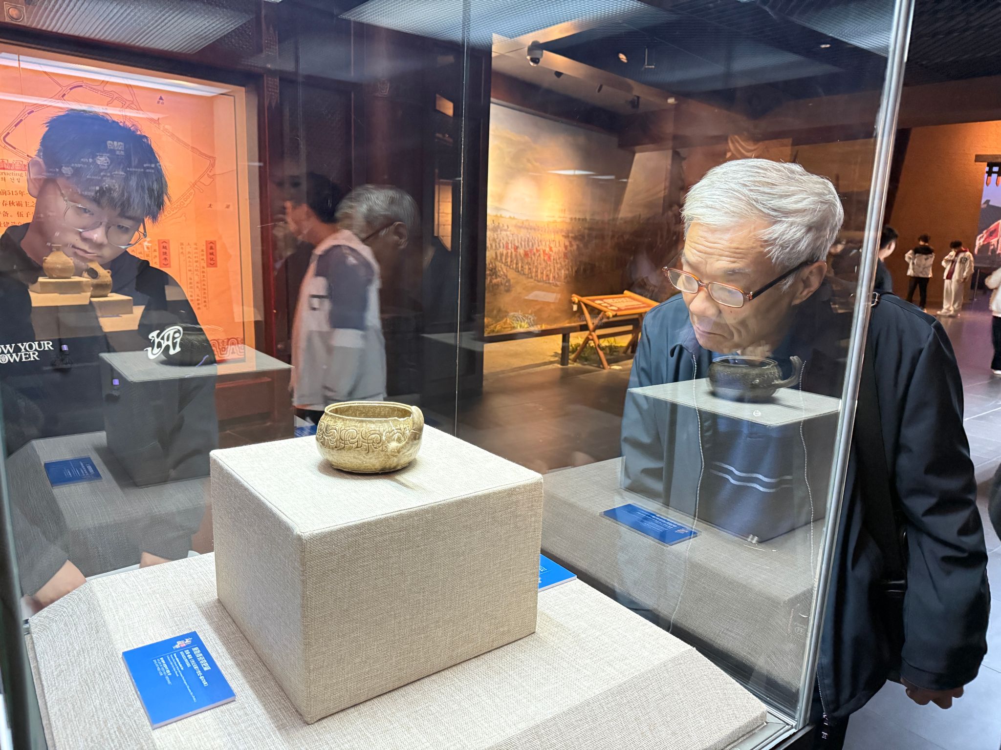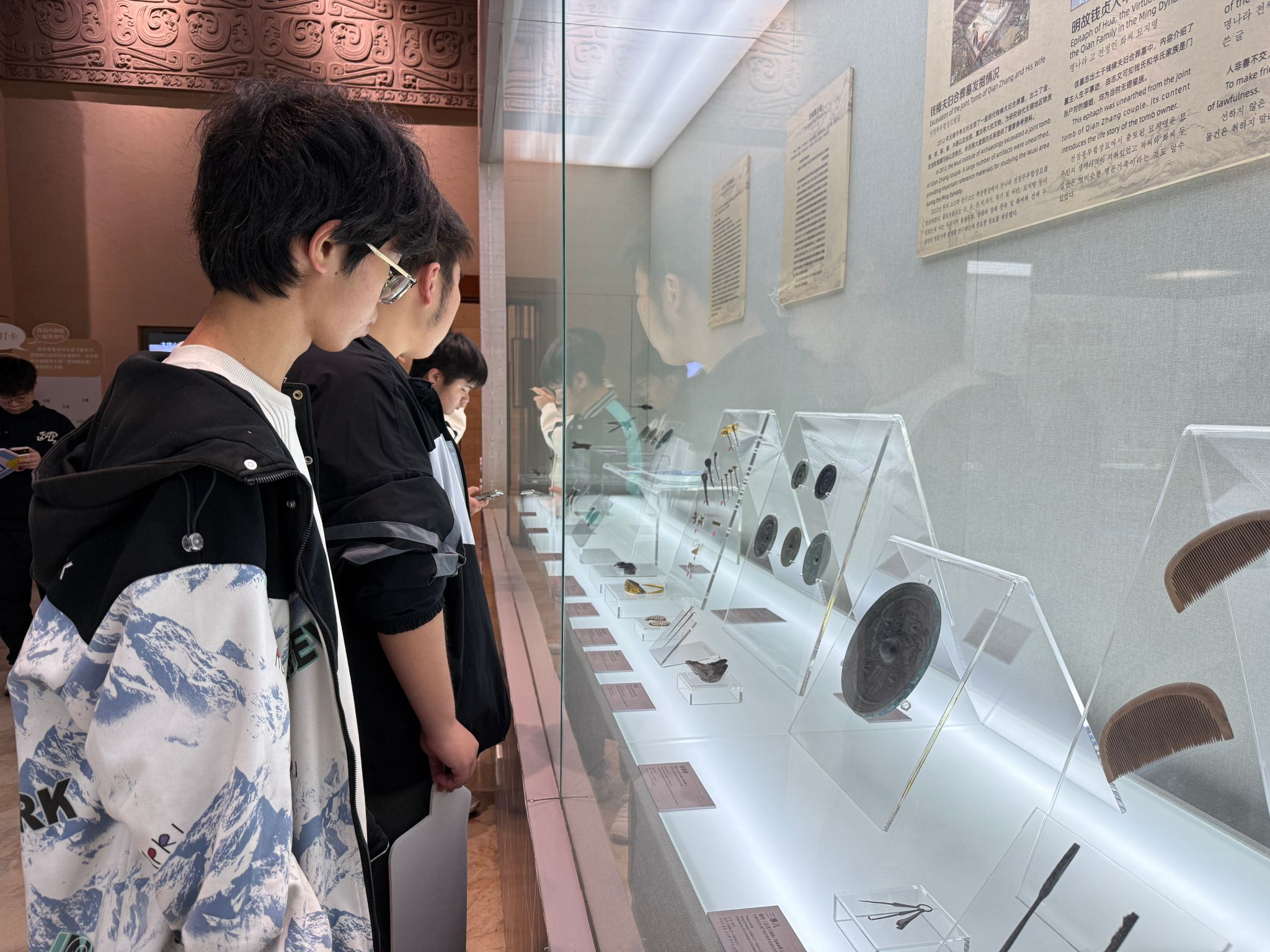 踏入常设展厅,一件件承载吴地历史的文物让同学们驻足流连。青铜礼器的对称造型、兵器的锻造纹路、陶器的拼接工艺,瞬间勾起了这群机械专业新生的探索欲。“古人的铸造工艺多精准,这不就是最早的‘精密机械’雏形吗?”新生们围绕文物的造型结构、工艺原理展开热烈讨论,在讲解员引导下,从吴地兵器的锻造技术到生活器物的设计巧思,系统梳理吴文化中蕴含的“工匠精神”,将机械专业的观察视角与历史文化学习深度结合。