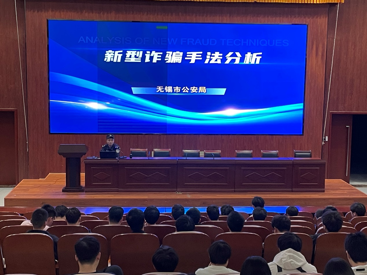 为进一步防范新型网络诈骗,提升大学生反诈防诈意识,4月24日至25日,机械工程学院邀请雪浪派出所、山水城警务站警官分两次为大一学生开展专题讲座,助力建设“无诈校园”。