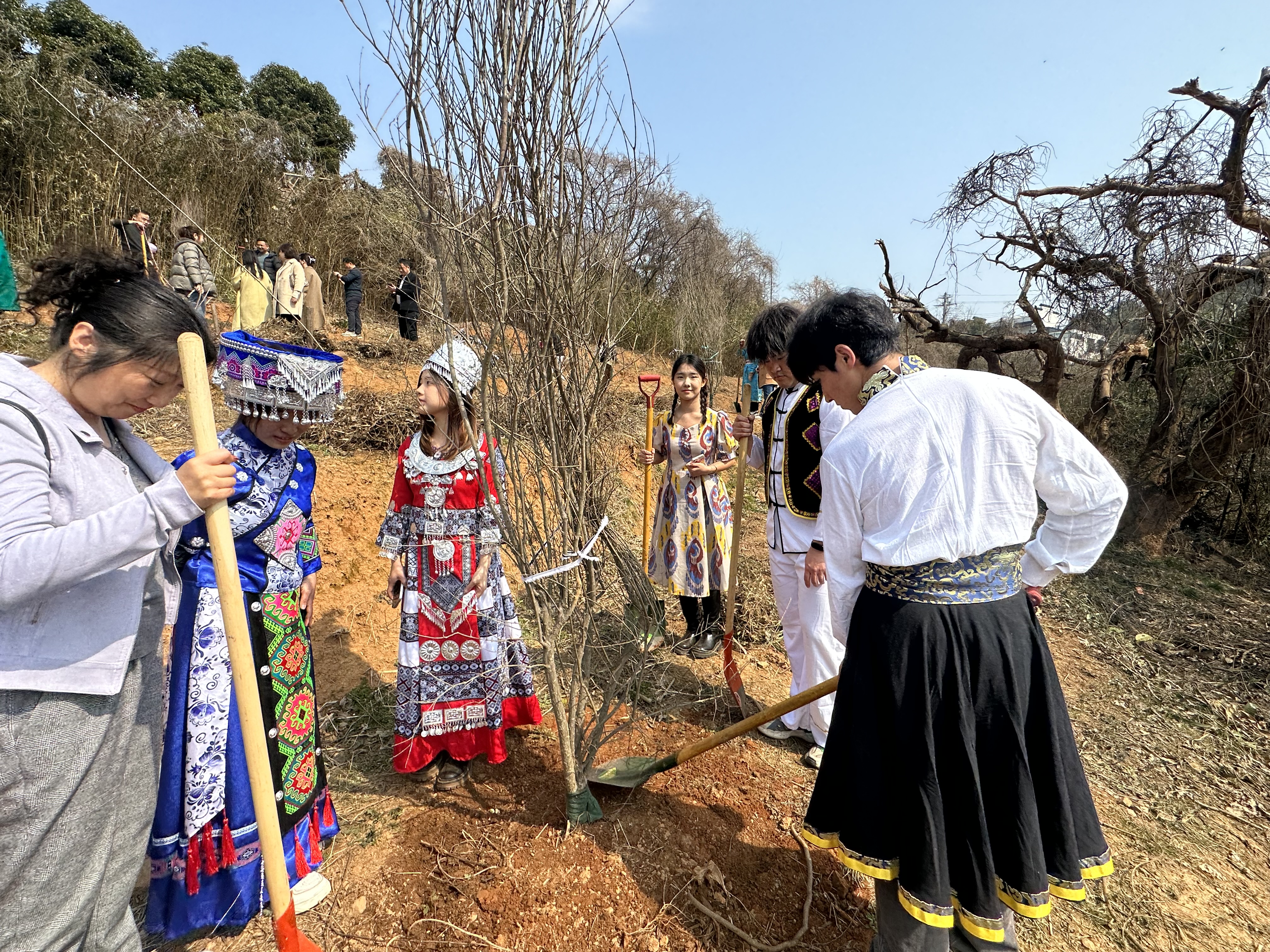 为全面贯彻习近平生态文明思想,践行绿色发展理念,也为深入贯彻习近平总书记关于加强和改进民族团结工作的重要思想,增进民族团结情感,机械工程学院学生党支部充分发挥基层党组织战斗堡垒作用和党员先锋模范作用,于3月11日组织了维吾尔族、回族、哈尼族、土家族等多名少数民族学生与若干学生党员,在马山街道踏青农庄开展了“党建引领民族情,同心共植石榴林”主题植树党建活动。