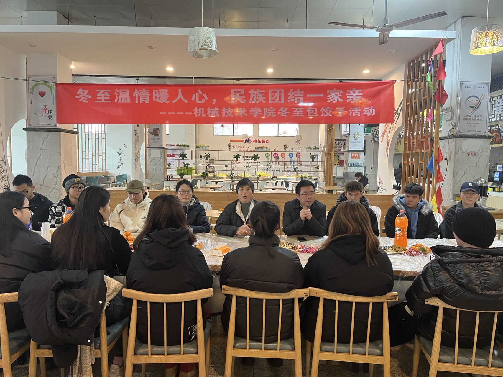为深入学习宣传习近平总书记关于加强和改进民族工作的重要思想,铸牢中华民族共同体意识,不断增进民族团结情感,落实《无锡职业技术学院大学生铸牢中华民族共同体意识系列活动方案》,12月19日下午,机械技术学院在学生四食堂(梅花餐厅)举行了“冬至温情暖人心 民族团结一家亲”包饺子活动。学生处处长徐悦、机械技术学院党总支书记王振华、副书记张静、辅导员、班主任、少数民族学生代表共计40余人参加了此次活动。