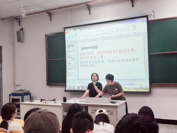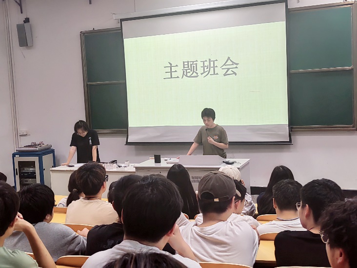 此次班会以“加强学生管理·筑牢安全防线”为主题,分为诚信考试教育,假期离校管理及暑假安全教育三个部分展开。班会伊始,嵇瑗介绍了班会的主题,详细讲述了诚实守信的悠久来源以及当代诚实守信模范的典型事迹,阐述诚信对于大学生的重要作用,激励学生手握诚信,积极应考。在假期离校管理部分,嵇瑗提醒学生离校前打扫好宿舍卫生,关好门窗,收好个人贵重物品,线上系统发起离校申请,到家及时报备。在暑假假期期间,注意交通出行安全,人身财物安全,网络安全,假期兼职安全等方面。如假期有心理困惑,及时与班主任沟通,或者拨打江苏省大学生24小时心理热线。谨防电信网络诈骗,提高警惕。远离河流湖泊,防止溺水,做到:快快乐乐过暑假,安安全全返校园。