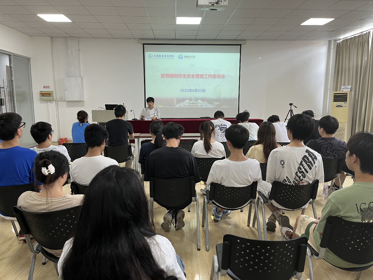 为切实增强学生的安全防范意识,提升自我保护能力,有效预防各类校园危机事件的发生,机械技术学院学工办于6月23日组织2021级和2020级主要学生干部、分团委学生会学生干部在S207会议室召开疫情期间学生安全管理工作座谈会。