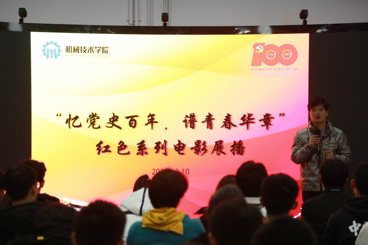 为丰富党史学习教育的内容和形式,充分发挥优秀影视作品的育人作用, 12月10日,机械技术学院在工业中心VR虚拟仿真实训室举办了“忆党史百年,普青春华章”红色系列电影展播活动。当天有近百名学生参加了首场展播活动,机械技术学院学工办主任刘世强老师致辞,寄语机械学子们认真学习党史,继承和弘扬革命先辈的红色精神,努力增强“四个意识”、坚定“四个自信”、做到“两个维护”,刻苦努力,坚强奋斗,为国家的繁荣富强贡献自己的青春力量。