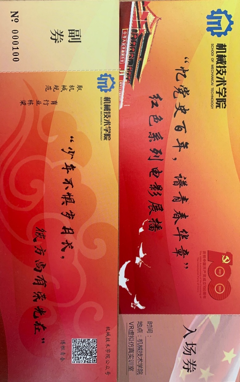 据悉,红色系列电影展播是我院党史学习教育主题活动的重要内容,精选《金刚川》、《八佰》、《长津湖》等经典影片在VR虚拟仿真实训室进行展播,在提供良好观影环境的同时特别设计专属电影票,线上预约,凭票观看,电影展播将在本学期第14—17周每周二18:30,下学期从第2周开始,每两周安排一场次,欢迎广大师生来我院参加观影活动。