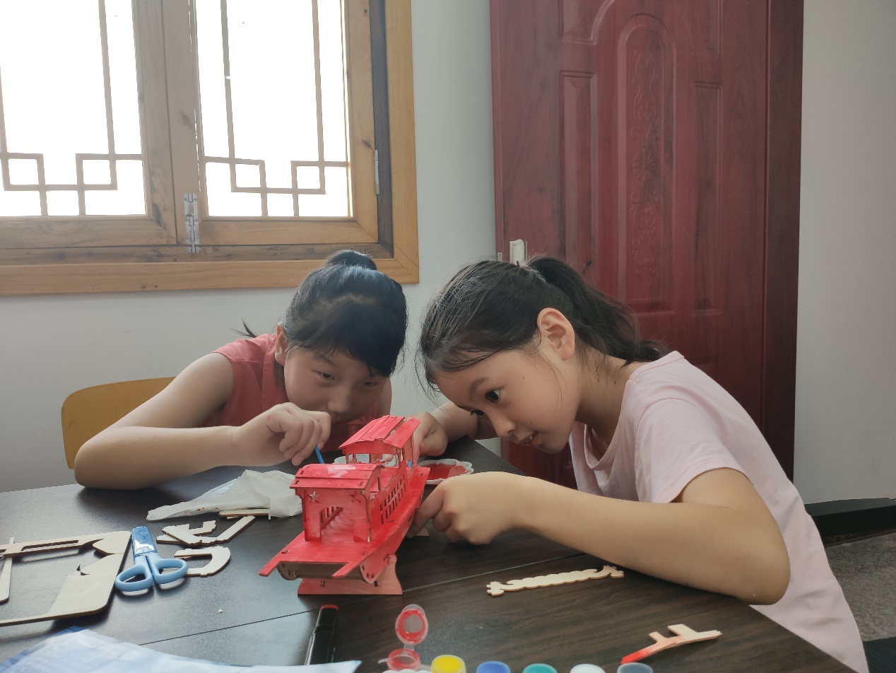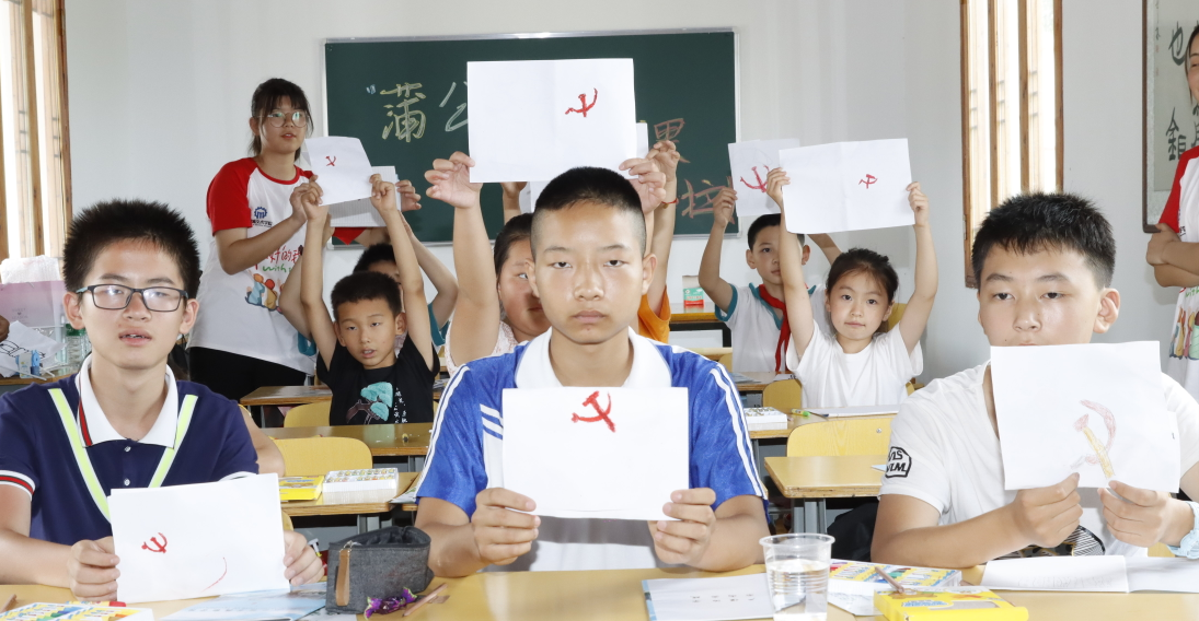 7月15日,志愿者们为孩子们开设了红色手工制作、红色手绘美术课等相关课程环节,让孩子们了解了党的诞生历程,学习了红船精神,课堂上志愿者们用生动的语言向孩子们介绍了五星红旗、党旗的构图要素及意义,并悉心指导他们如何绘制党旗,制作国旗,希望能够让孩子们增强爱党、爱国之心;在工艺作品制作环节中,志愿者们带领孩子们制作手工红船,感悟红船精神内涵,一艘艘象征平凡而充满使命的小船在孩子们手中诞生,为建党100周年送出美好祝福。