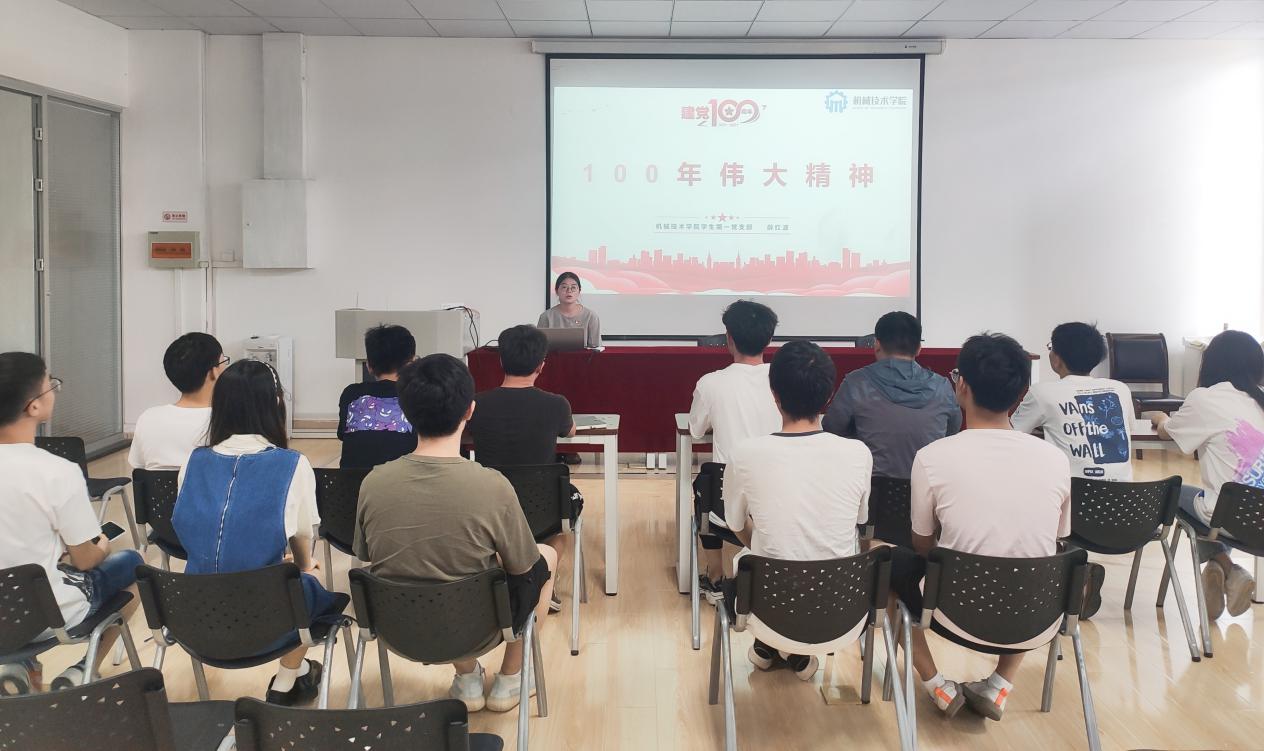 在喜迎中国共产党成立100周年之际,根据机械技术学院《党总支对支部党员党史学习教育的总体要求和部署》安排,6月29日下午,机械技术学院学生第一党支部书记薛红波以“100年伟大精神”为主题,为学生第一党支部全体党员讲授专题党课。