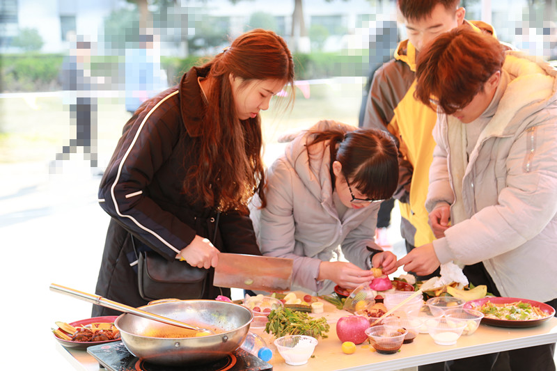 本次校园美食文化节由“美味”共享、谁是“大胃王”、“厨神入化”厨艺大赛三个环节组成。“美味”共享环节,现场人头攒动、热闹非凡,不仅可以让同学们免费品尝到各种各样无锡特色的小吃美食,也可以让同学们在享受美食的同时了解更多独具无锡地域特色的美食文化。在谁是“大胃王”的比赛环节,共有四组24位选手参加了角逐,参赛选手们必须在100秒中,凭借吃包子数量来决胜,激烈的竞争不仅展现了同学们的食量,也给同学们带来了欢乐。在最引人注目的“厨神入化”厨艺大赛环节,共有八组选手参加“厨神”头衔的争夺,选手们按照比赛的要求,纷纷亮出了自己的“看家本领”,在20分钟内,团队配合完成了水果拼盘、凉拌、热炒三个环节的比拼争夺,评委们最终通过色、香、味、创意四个标准进行评分,最终汽车与交通学院代表队、物联网学院代表队、外语与旅游学院代表队分获冠亚季军。