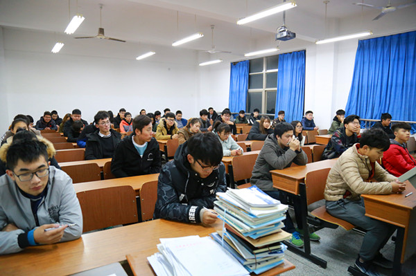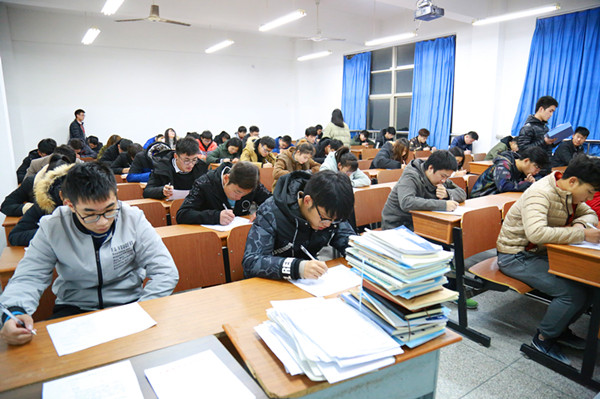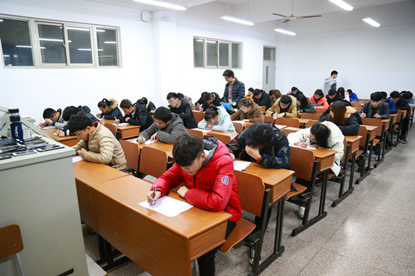 12月12日晚,机械技术学院在明德楼(C)203举行了2017-2018学年第一学期党校结业考试,学院团总支书记周勋勋老师莅临考试现场,99名党校培训学员参加考试。