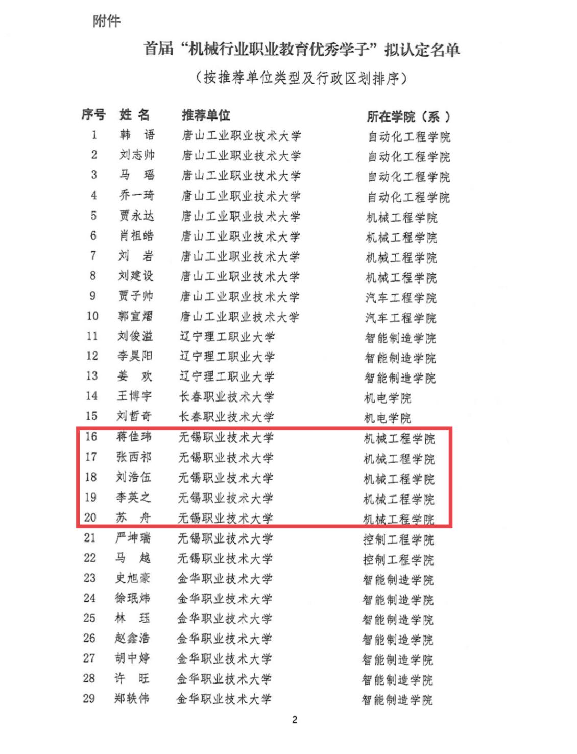 近日,首届“机械行业职业教育优秀学子”评选结果公布,我院蒋佳玮、张西祁、刘浩伍、李英之、苏舟5位同学,凭优异综合素质、扎实专业技能及突出实践表现斩获此项殊荣。