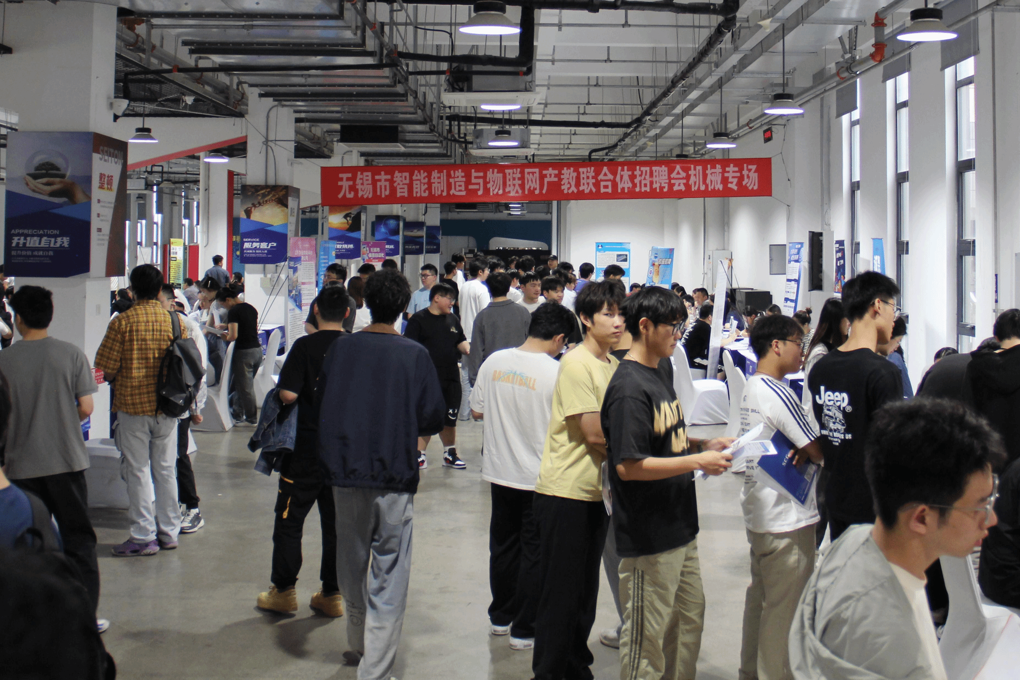 本次招聘会以党建为引领,依托党建共建合作平台,精准对接产业需求,聚焦专精特新企业,重点服务江苏及无锡地区企业的智能制造发展。现场50余家优质企业齐聚,阵容强大:8家国企彰显实力担当,7家上市公司展现行业地位,22家“专精特新”企业、15家“瞪羚企业”以及8家“绿色制造”企业竞相揽才,高新技术企业更是占到了80%。其中,既有威孚高科、派克新材料、江阴电工合金等往年招聘会的“老朋友”再度携手,也有无锡深南电路、常州恒立气动科技、无锡雪浪环境科技等“新朋友”的首次亮相,共同为毕业生们带来海量优质岗位。