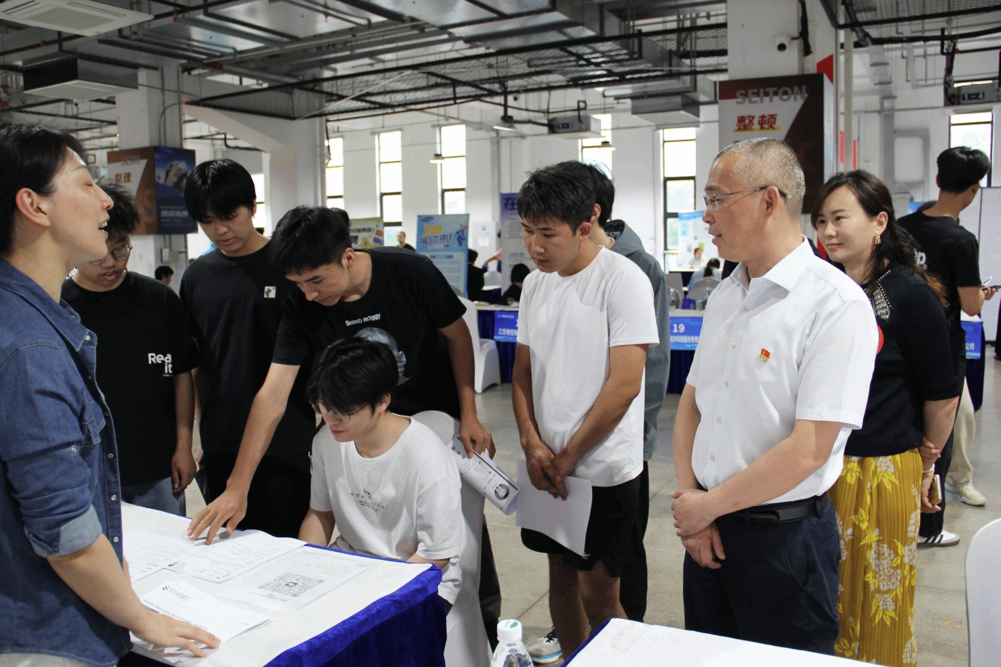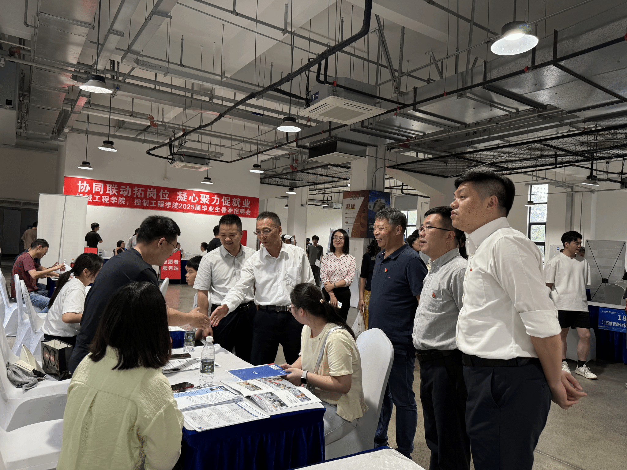 为深入贯彻落实党中央、国务院“稳就业”“保就业”决策部署,牢牢把握春季促就业关键时期,全力推动2025届毕业生实现高质量充分就业。5月13日下午,机械工程学院于敏行楼一楼举办“党链聚匠・智造新才”2025届毕业生春季专场招聘会。校党委书记龚方红、副校长强伟纲及机械工程学院党政领导班子来到招聘现场,与参会企业代表、求职学生展开深入交流。