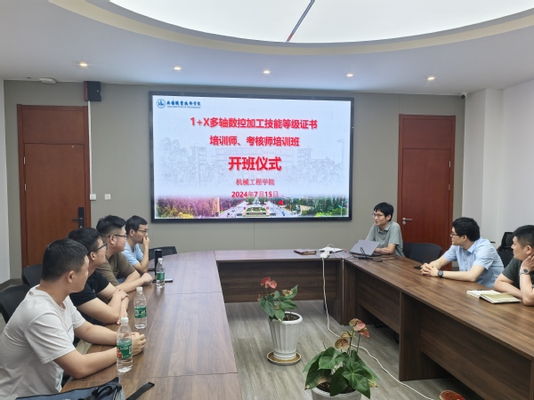 为深入贯彻《关于推动现代职业教育高质量发展的意见》《关于深化现代职业教育体系建设改革的意见》等政策对于优化师资能力建设、巩固职业教育类型定位、完善职业技能培养的精神与要求,提升职业院校教师高端装备操作与应用技能、增强数字素养,机械工程学院承建的华中数控多轴数控加工职业技能认证考点将在2024年7月15日-7月20日开展多轴数控加工职业技能等级证书培训师、考核师认证培训和考核。7月15日上午,开班仪式在机械工程学院S206会议室举行,由机械工程学院副院长曹澍主持,机械工程学院的培训讲师张虎副教授以及来自包括哈密职业技术学院老师在内的9名学员代表参加了仪式。