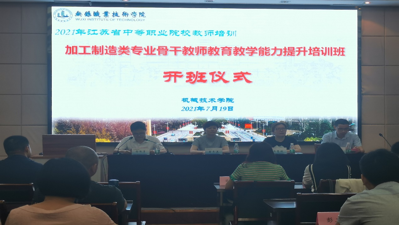 7月19日上午,由江苏省中职教师培训中心主办、无锡职业技术学院机械技术学院承办的加工制造类专业骨干教师教育教学能力提升培训班开班仪式在国际交流中心二楼报告厅举行。出席本次开班仪式的有无锡职业技术学院吴慧媛副校长、继续教育学院曹冬美副院长、机械技术学院俞张勇副院长和唐立平副院长及来自全省各地的60名中职校骨干教师。开班仪式由机械技术学院俞张勇副院长主持。